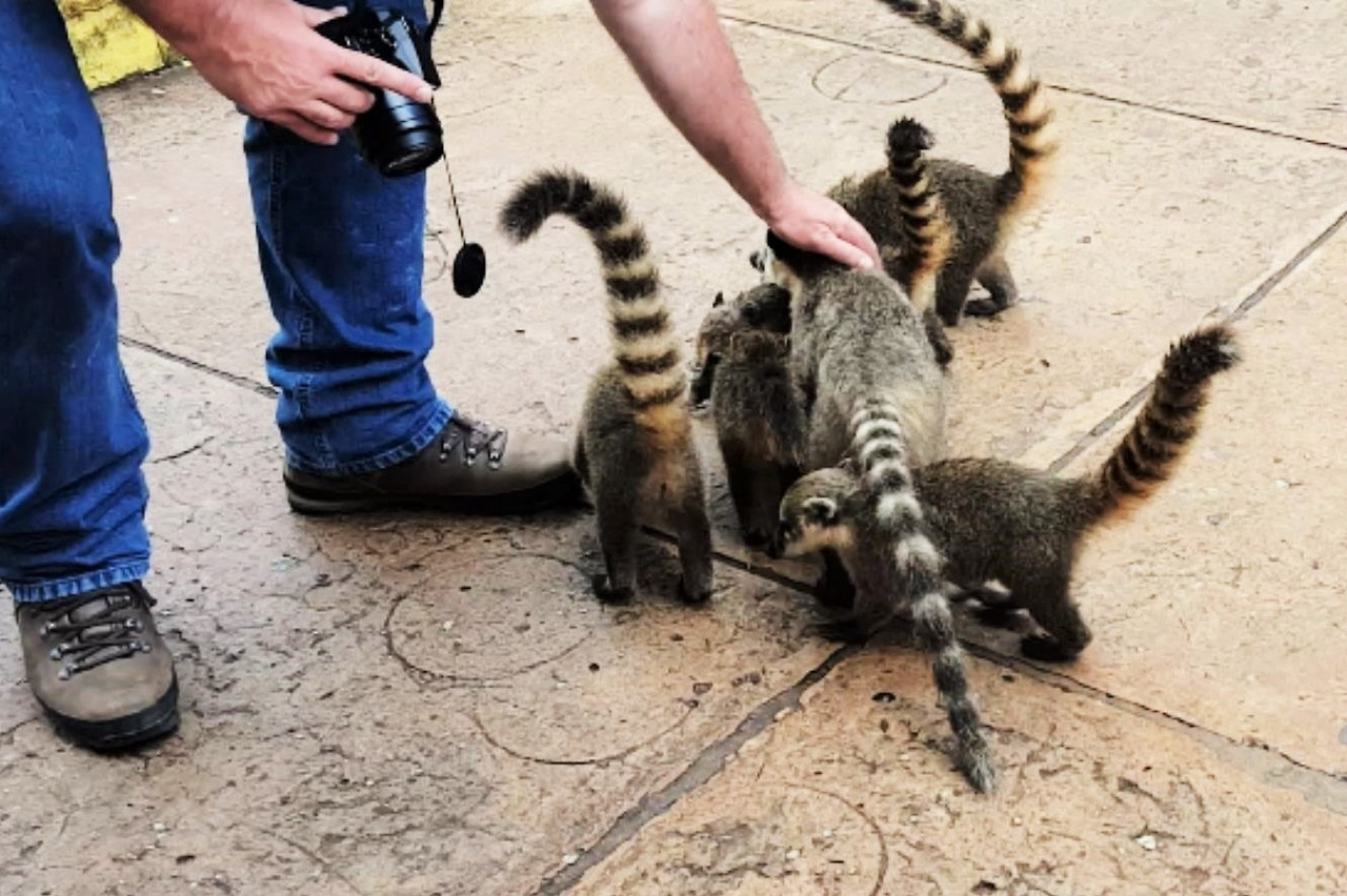 식당 주변에는 꾸아띠 Quati가 몰려다닌다. 때로는 잽싸게 사람들의 먹거리를 탐낸다. 관광객들은 놀아주기도 하나 조심해야 한다. 마구 따라붙으니.