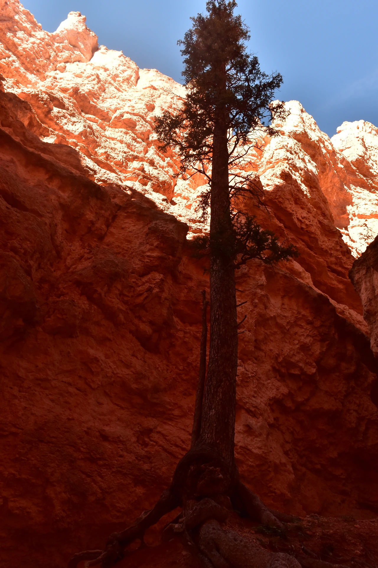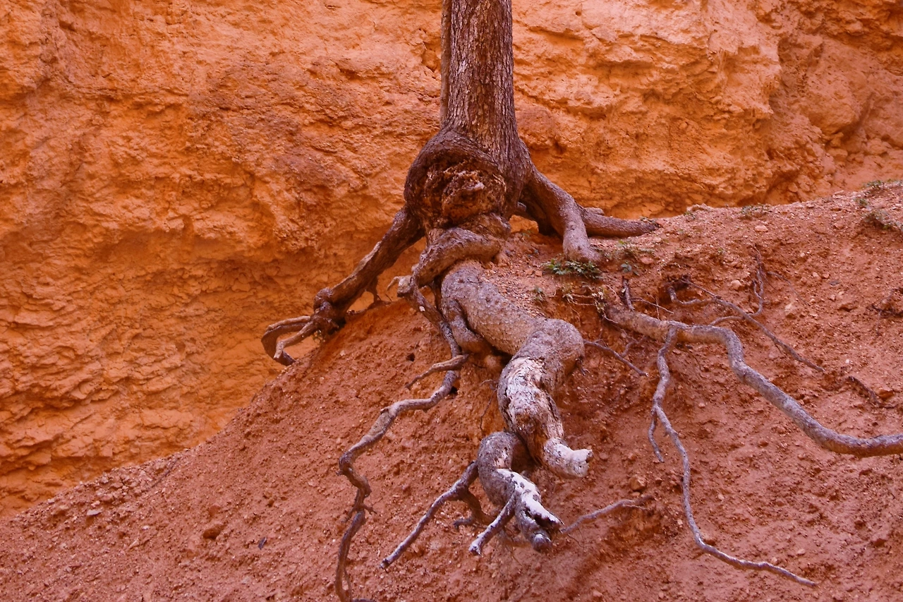 비가 오지 않는 건조한 지역이고 부드러운 사암의 침식이 아주 빠르다. 모습을 밖으로 다 드러낸 뿌리, 그래도 살아남아 정해진 수명을 다하리라. 따스한 햇살을 찾아 하늘만 보고 살았나 보다.