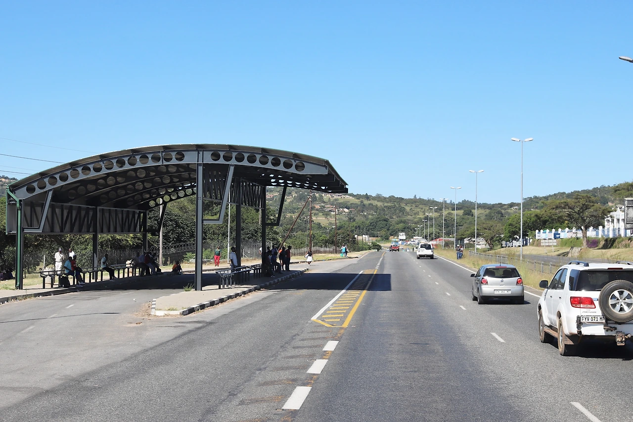 포장도로를 따라 사바나 숲 속을 들어간다.