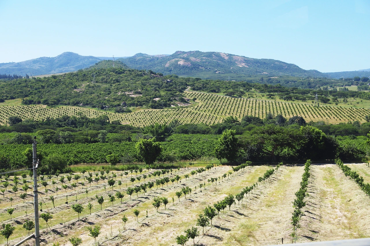 가지런히 줄을 맞춰 심은 어린 오렌지 나무.