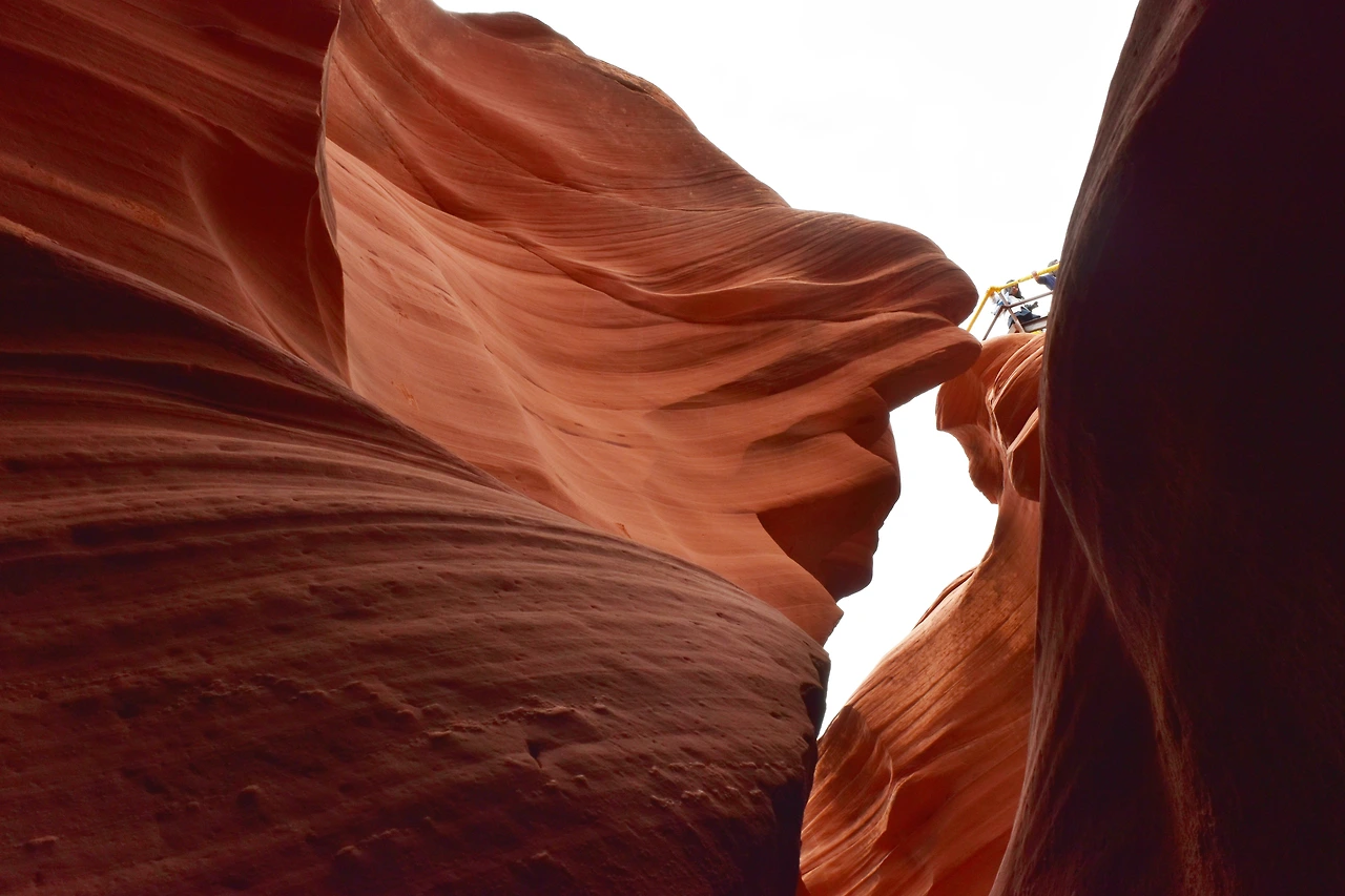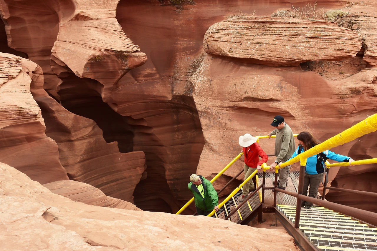 드디어 11시가 다 되어 가이드의 주의 사항을 듣고 입구를 향해 출발했다. 지층이 갈라진 틈으로 내려가는 철계단이 나타났다. 조심하라는 말에 난간을 잡고 지하로 내려간다. 빼꼼하게 열린 좁은 틈으로 빛이 받는 지하 동굴이다. 전체적으로 붉은색을 띠고 있다. 물이 흐른 흔적이 벽면의 바위에 섬세하게 드러나있다. 사람 손으로 빚어 놓은 것 같은 모습이다. 현지 가이드는 고향에 대한 자부심이 대단하다. 이곳 독특한 지형의 발견 당시 이야기부터 현재 세계적인 관광지가 되기까지를 신나게 설명한다. 이곳 동굴을 자랑스럽다며 자부심이 넘친다.