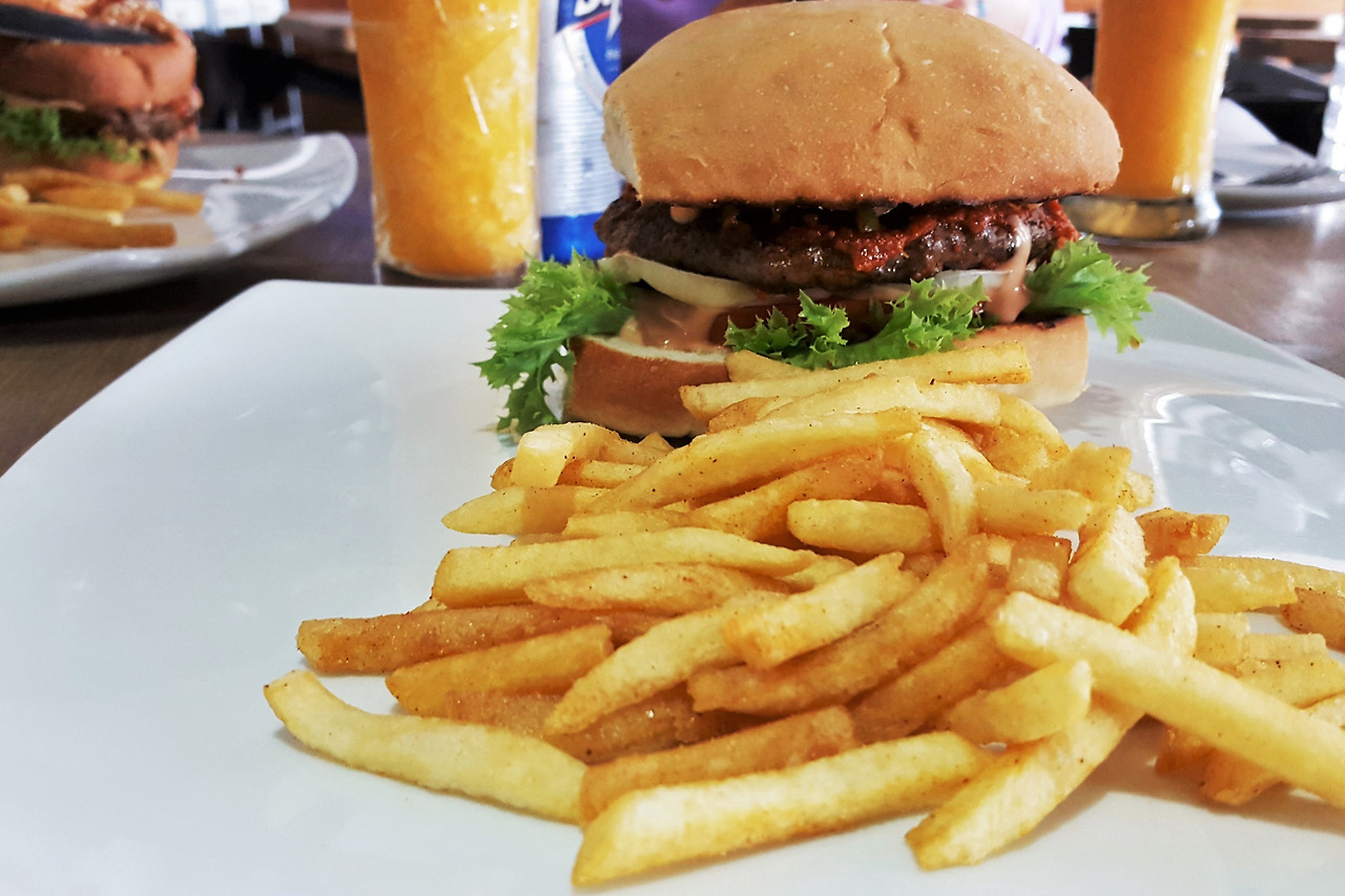 푸짐한 햄버거와 음료를 주문하여 점심 식사를 하였다.