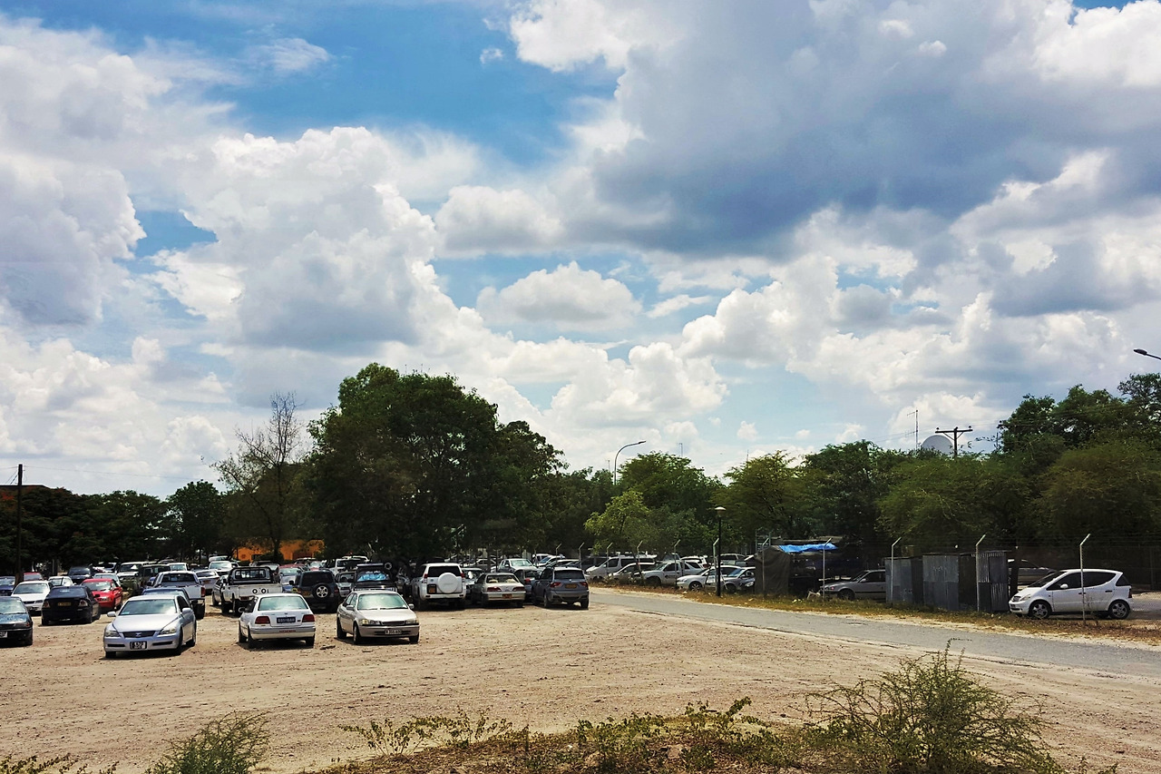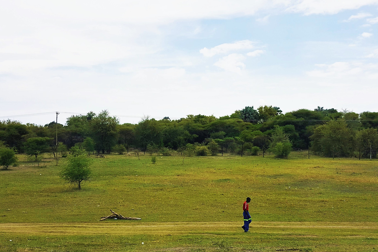 트럭은 그웨타 Gweta에서 마운 Maun을 향해 달린다.