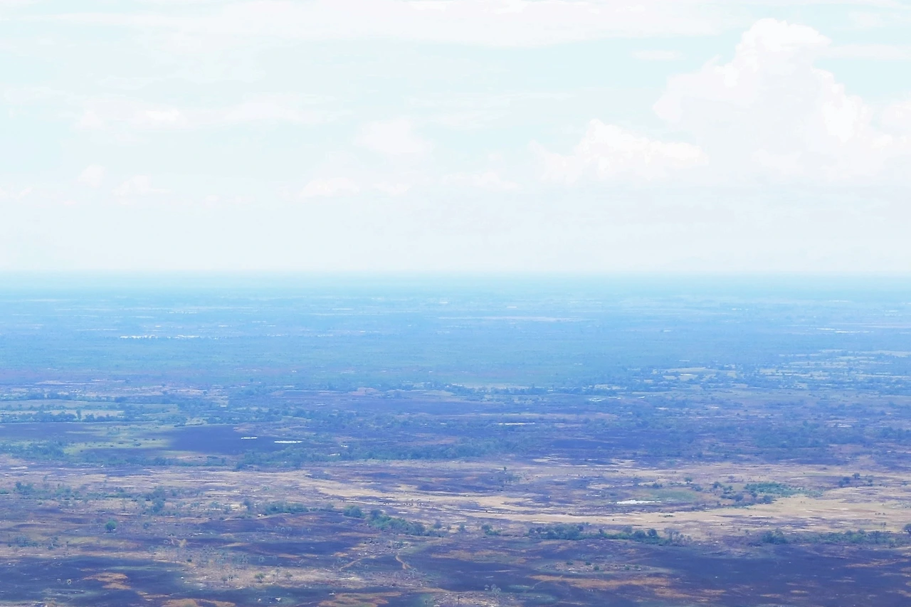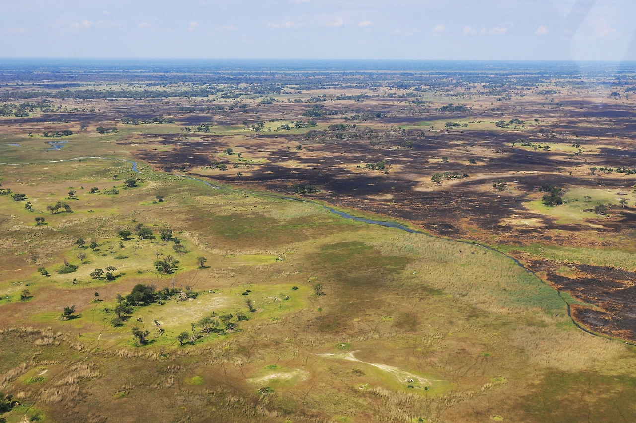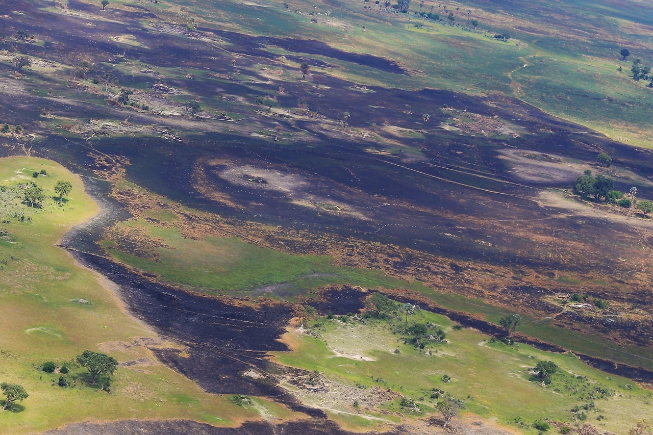 높이 오를수록 더욱 넓게 펼쳐지는 불에 검게 그을린 아프리카 초원.
