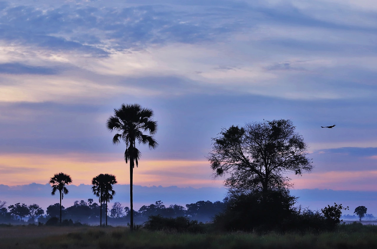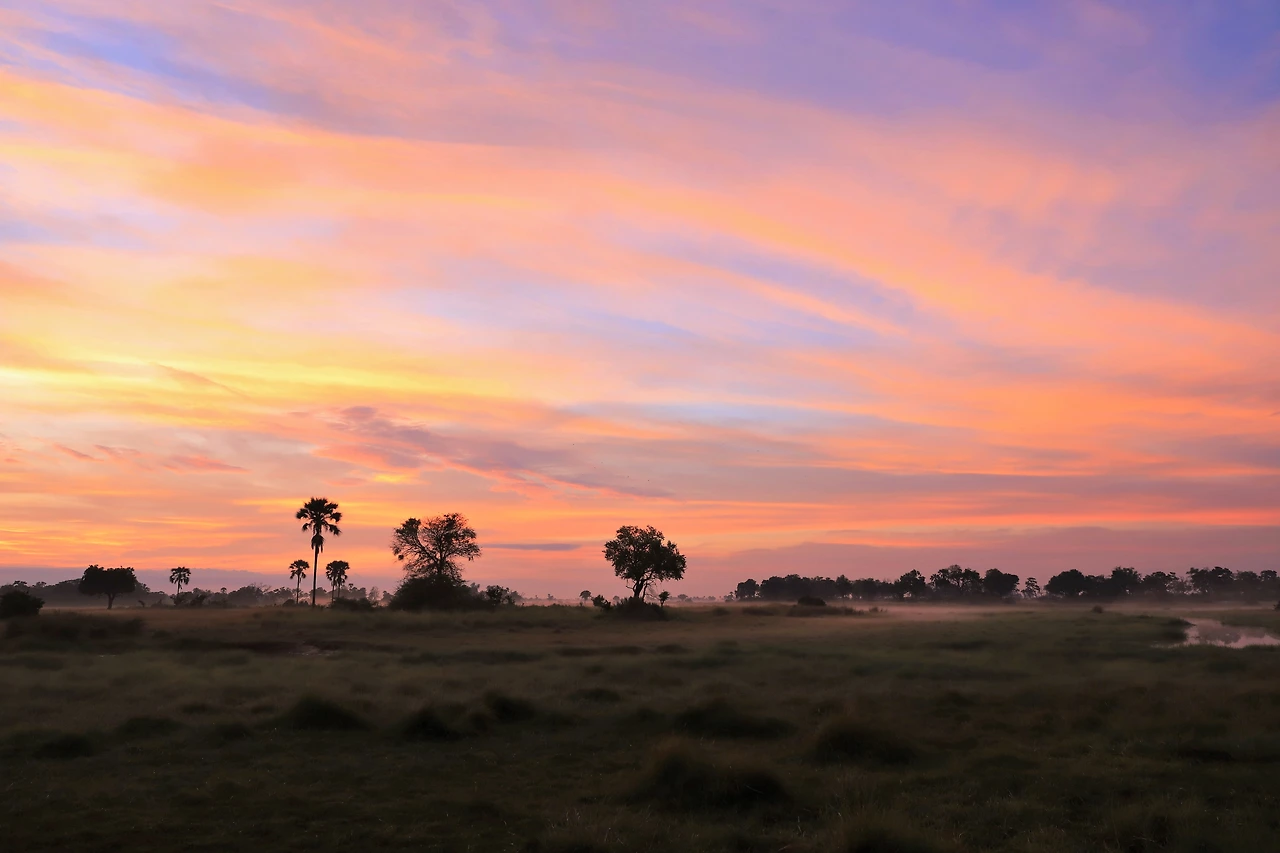 그런데 오카방고 강 주변은 건조지역이다. 기후 변화로 건조지역이 확대되면서 흐르던 강은 사막으로 사라지고 흐르던 강줄기가 막혀 호수가 형성되고 구 주변은 세계 최대의 습지를 형성하게 되었다. 지도에서 보이는 녹색 손 모양의 충적지가 오카방고 델타이다. 강 유역의 습지는 온갖 동물이 살아가는 생태계의 보고이다.