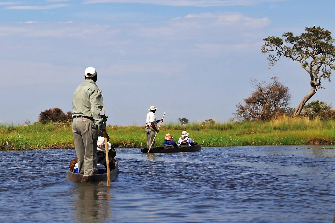 오카방고 델타 투어를 위해 모코로 Mocoro(2인용 전통배)를 타고 강으로 나간다.
