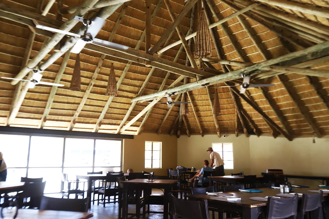 지붕이 넓어 시원한 멋진 식당으로 들어갔다.
