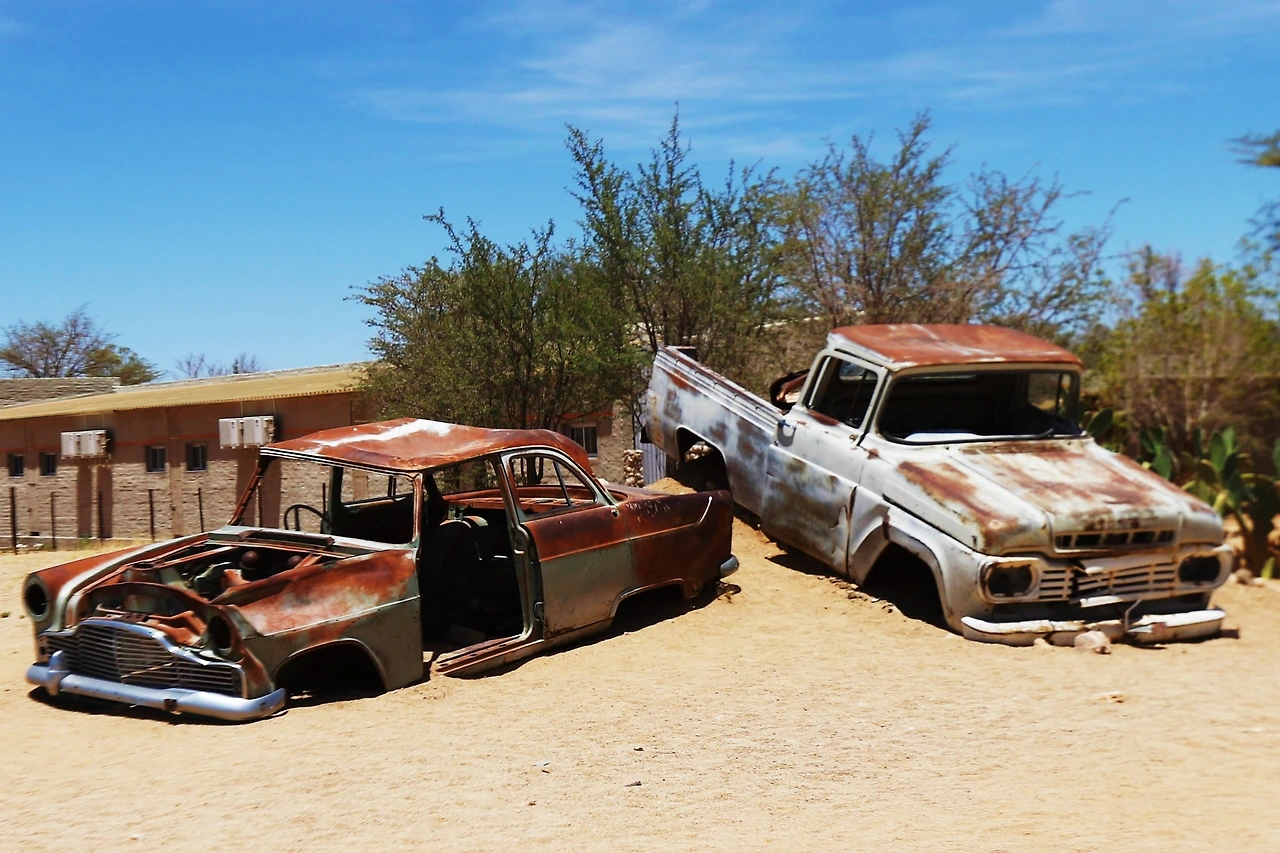 모래에 몸을 박고 몇 대의 올드카가 멈춰 있다.