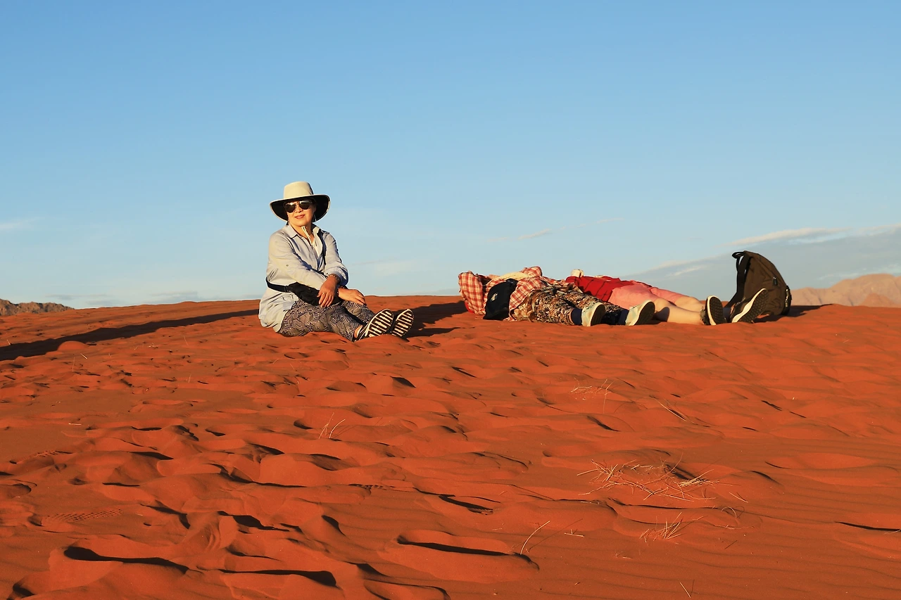 휴식으로 기운이 회복되자 가까운 모래 언덕(옐림듄)으로 일몰을 보러 나간다.
