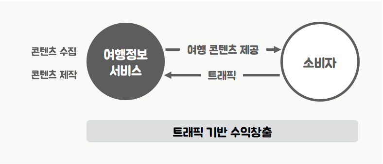 요약하면 트래픽 기반 사업이며, 이 구조는 미디어/SNS 서비스와 유사하다. 따라서 여행정보 서비스는 여행 미디어 서비스라고 정의할 수 있다.