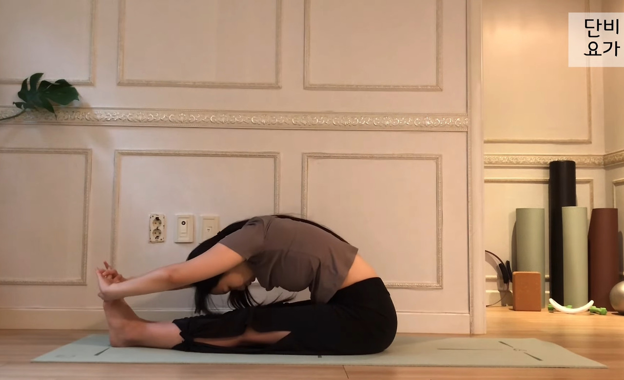 그래서 이 자세를 하면 다리가 유연하지 않으신 분들이 허리가 아프다는 말을 종종 하시는데요!