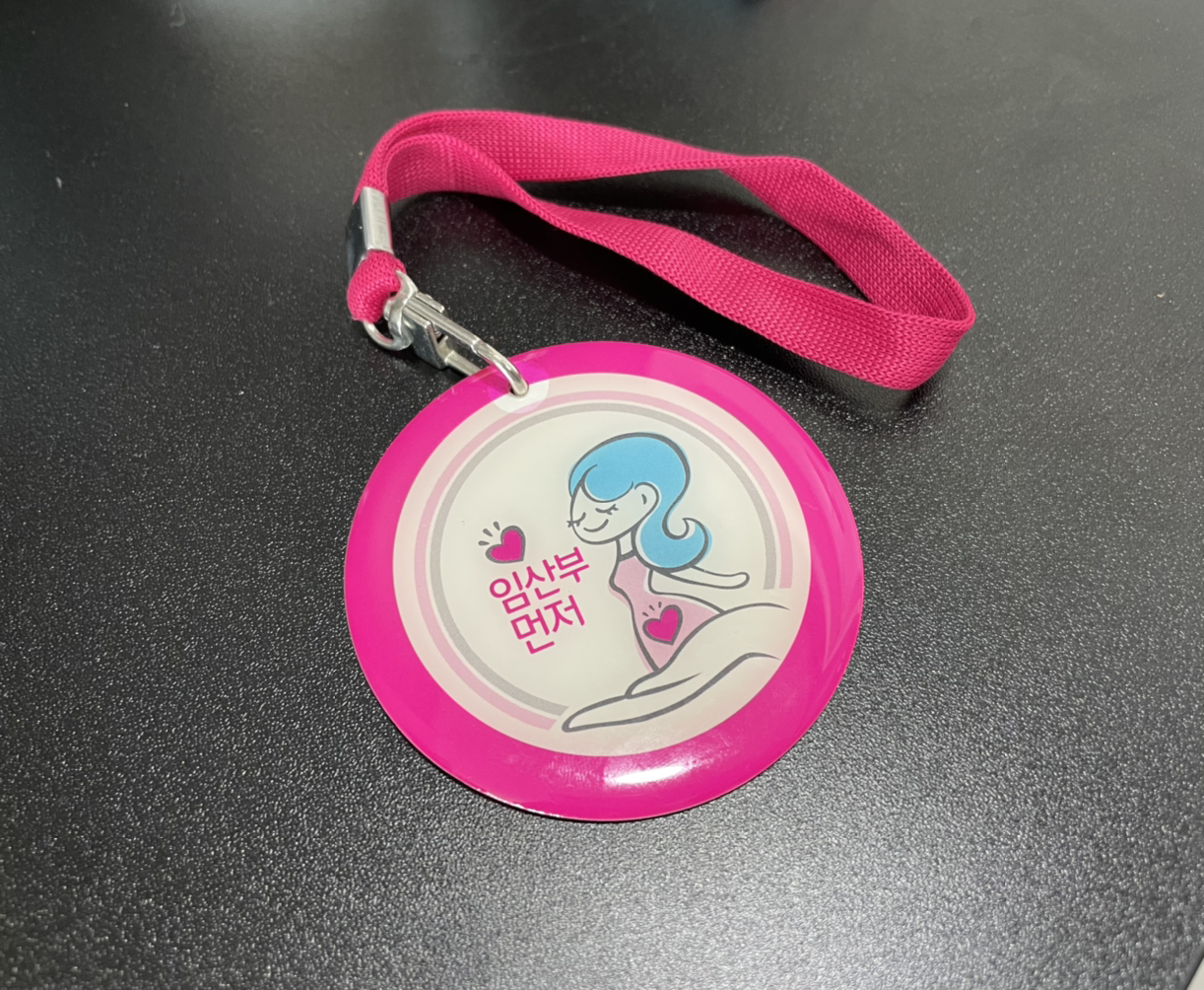 가방을 바꾸면서 두고 나갔을 때 불안했던 기억 때문에, 외출하기 전날 밤엔 늘 점검하던 내 방패, 임산부 뱃지. 만삭 직전까지도 배가 남들보다 많이 안 나왔던 터라 티가 잘 안 나서 더욱 이 뱃지를 방패삼아 다녔었다. 사람들이 그냥 길을 지나다닐 때, 특히나 대형마트에서 카트를 끌거나 할 때는 얼마나 위협적인지 잘 모를 것이다. 길에서 떼 지어 뛰어오는 아이들이나 자전거로 전력 질주하는 학생들, 자기만의 질서로만 달리는 전동 킥보드와 휠체어까지.. 나는 이 뱃지 없이는 한 발자국도 밖에 나갈 수 없었다.