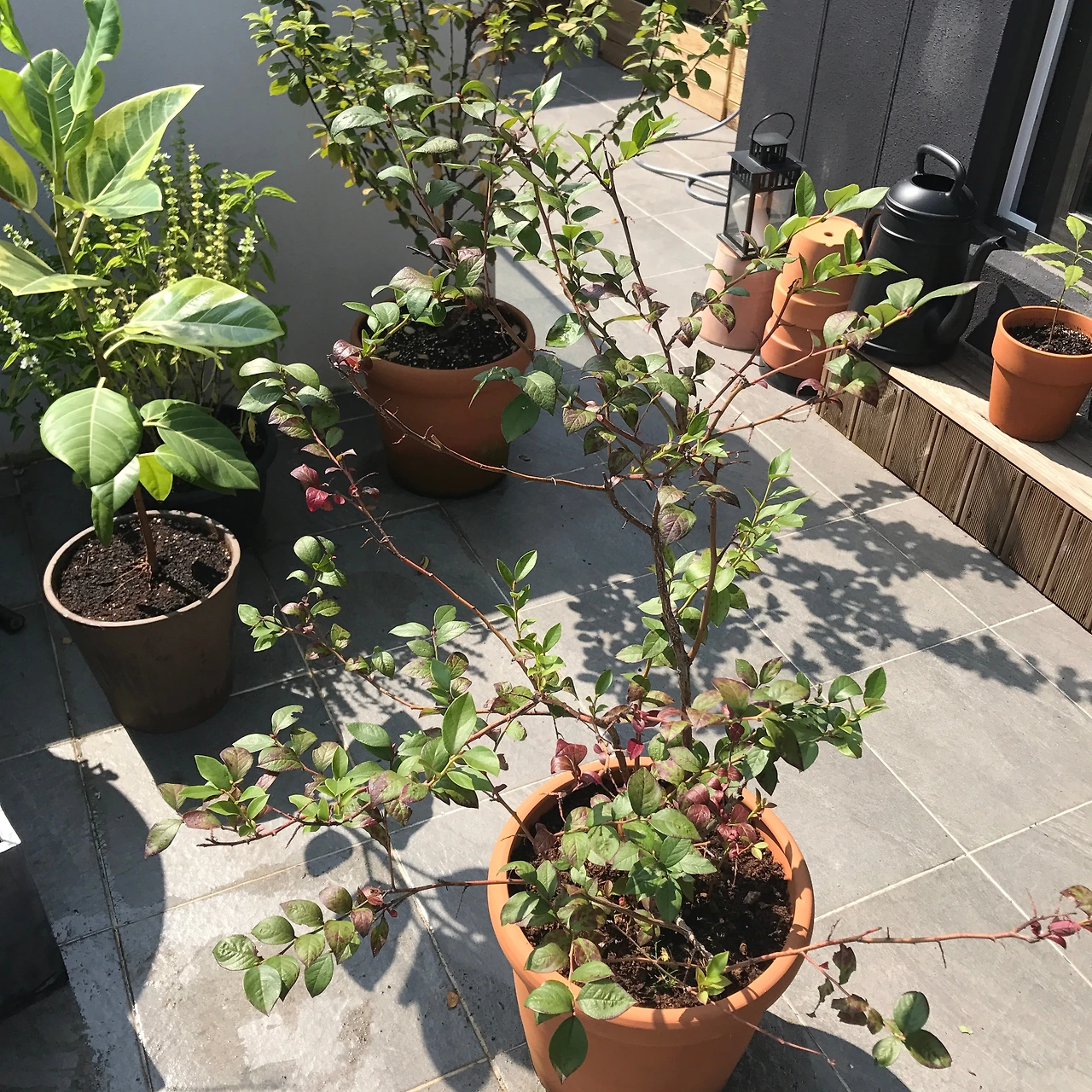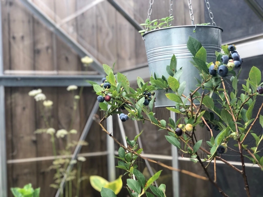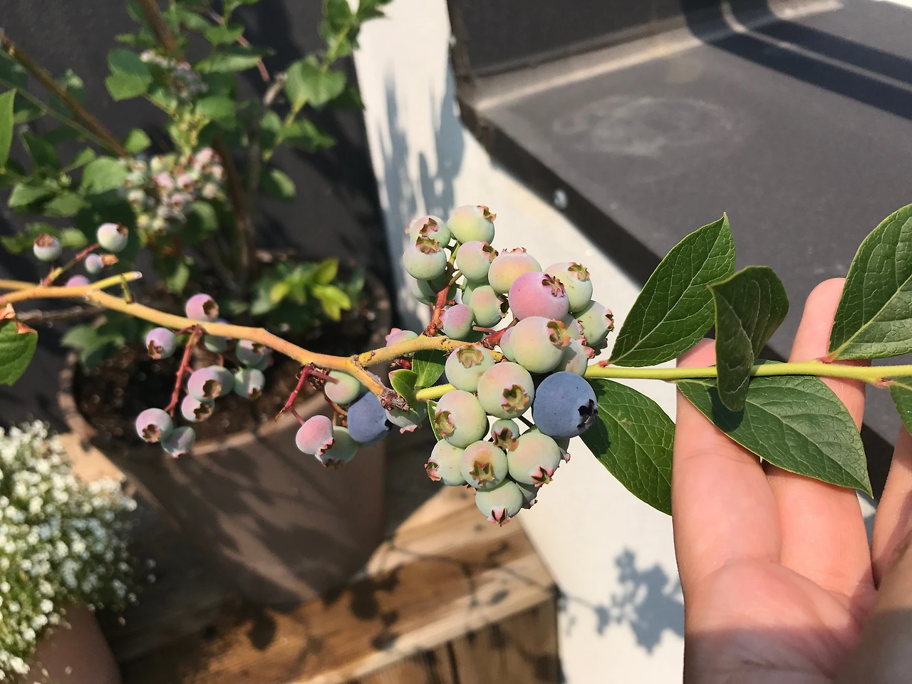 아이러니하게도, 블루베리 나무는 아름다운 수형과 열매를 위해 야외에서 키우는 게 여러모로 쉬운데, (벌들과, 햇볕 바람 등) 열매가 익고 나면, 새들이 기가 막히게 찾아와 다 뺏어먹는다. 블루베리를 키우는 여러 블로거들 사이에서 보면 블루베리가 익은 시점에 그물망들이 나무에 걸쳐져 있는 모습을 심심치 않게 볼 수 있다. 열매가 익은 이 모습이 블루베리의 정점이라면 정점인데 안타까운 일이다. 여하튼 블루베리 수확철이 되면, 온실 안으로 다시 옮겨둔다.