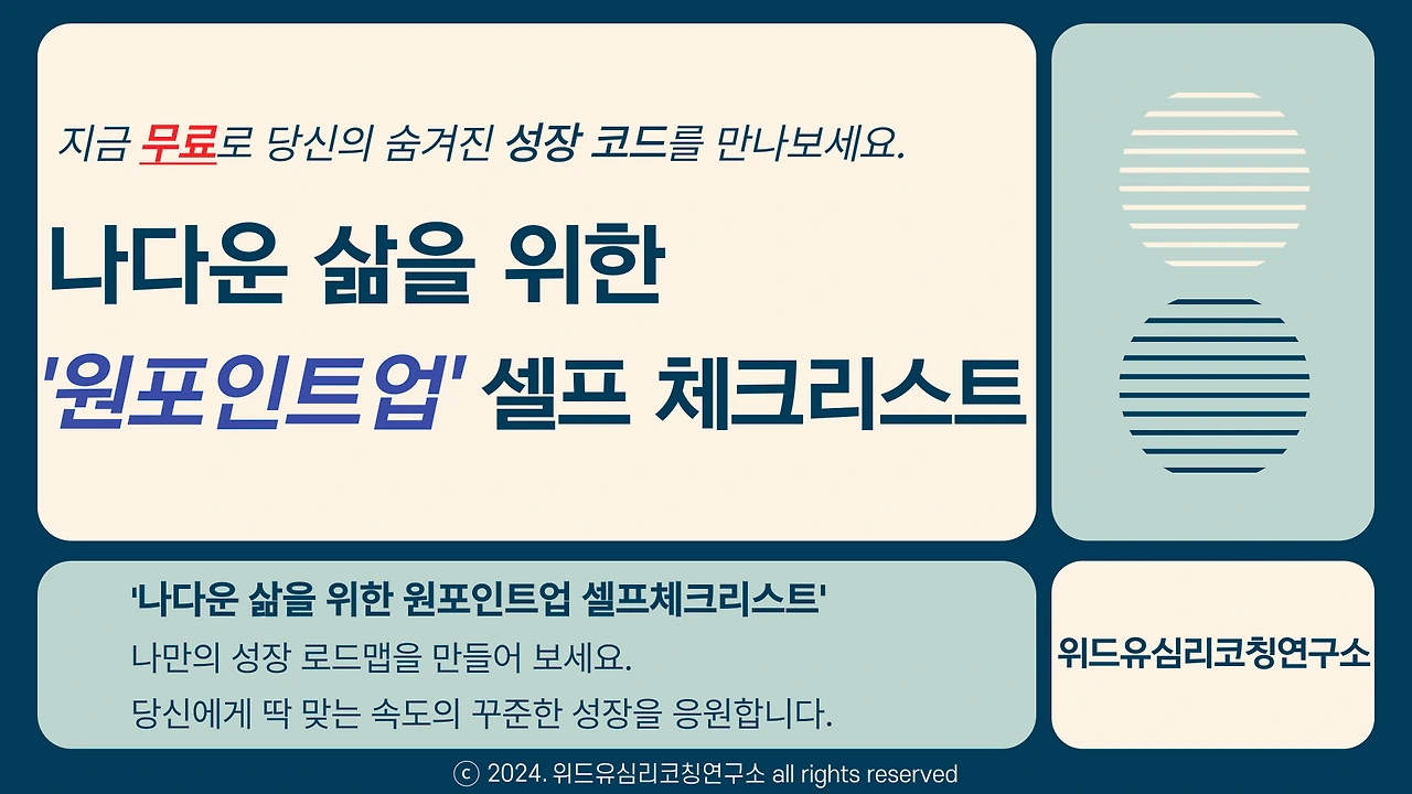 지금, ‘나다운 삶을 위한 원포인트업 셀프 체크리스트’로 나만의 성장 코드를 확인해 보세요.