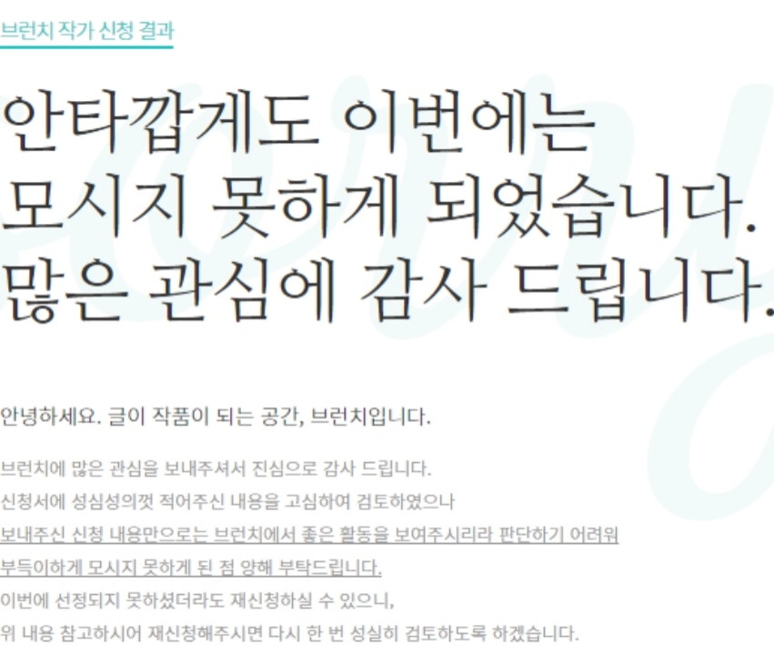 한 두 번의 탈락을 경험하였거나, 잠시 브런치스토리 작가 신청을 멈추고 있는 사람들!