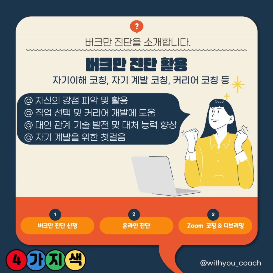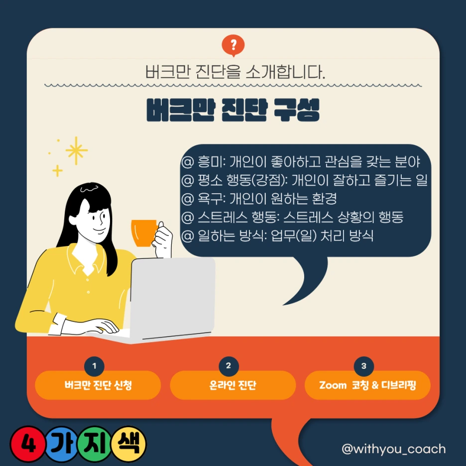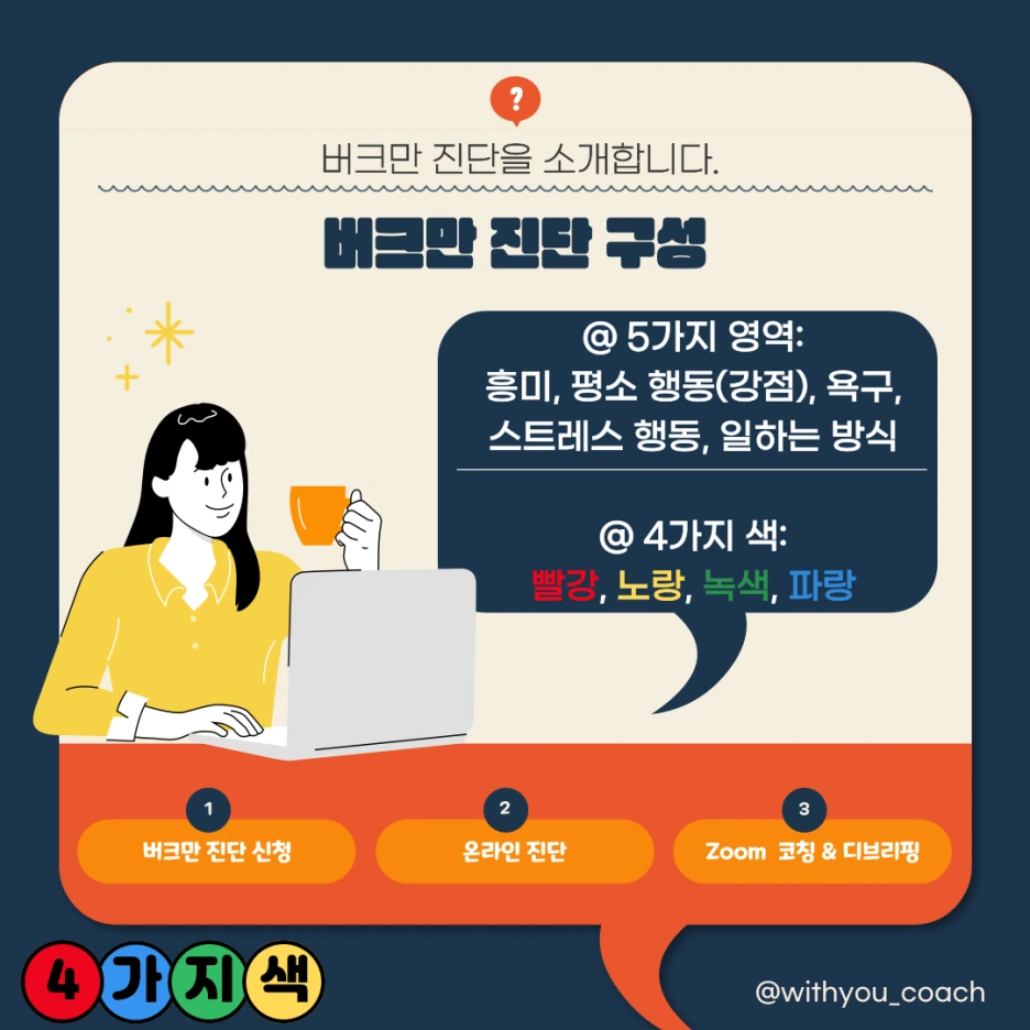 버크만 진단을 통해 나의 컬러를 파악하고 이해한다면, 우리는 자신의 강점 그리고 자신이 원하는 것을 명확히 알 수 있습니다.
