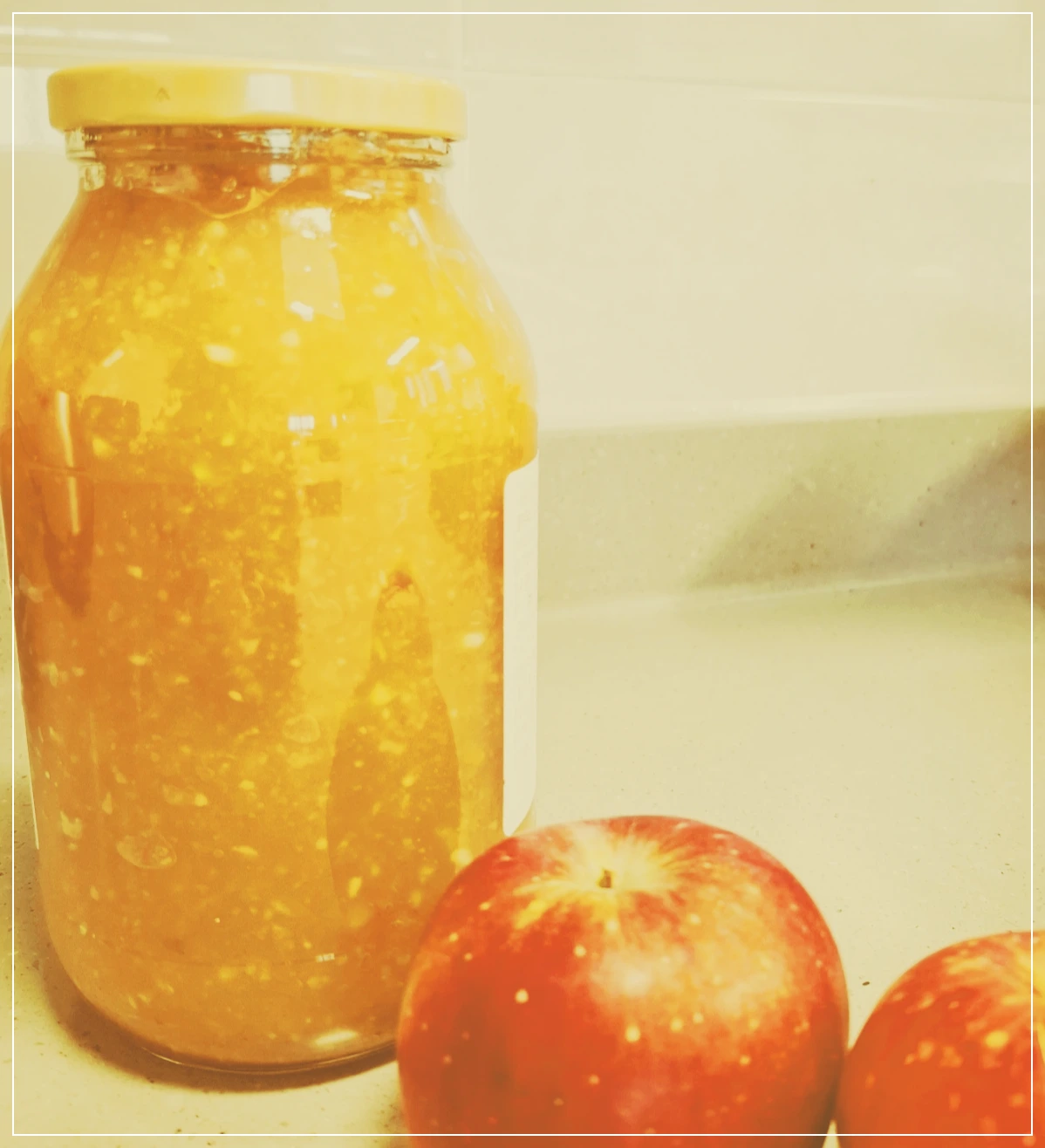 여하튼 평화롭고, 화가 났고, 엄마의 주름과 오랜 신앙생활의 깊이로 인한 존경심에 울컥한 오전이 후다닥 지났다. 내 머릿속에는 온통 잼을 만들 생각뿐이었다. 어젯밤 설탕을 부어 놓았던 사과는 다행히 갈변되지 않았다. 부랴부랴 집으로 가서 사과를 믹서기에 갈았다. 그러고 나서 약불에 설탕을 더 넣어 저어 주면서 끓이기 시작했다. 냉동실에 찾아보니 레몬즙이 있었다. 물에 타 먹으려고 레몬을 갈아 큐브 형태로 얼려 놓은 것들이 있어 덩어리 서 너 개를 끓고 있는 사과에 넣었다.