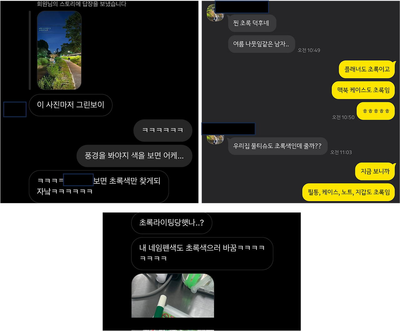 초록색 아이템만 보이면 '어? 00님 이거 사야 되는 거 아니에요?" 소리를 듣기 시작했다. 심지어 전혀 몰랐던 아이템을 추천받기도 한다. 아니 초록색만 보면 내 생각이 자연스럽게 난다는 지인들도 생기기 시작했다.