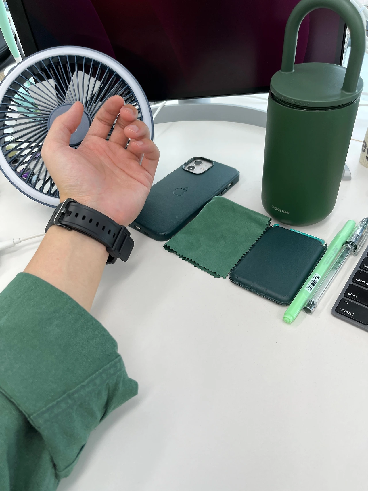 같은 물건을 사더라도 내가 좋아하는 색인 초록색으로 사면 어떨까?라는 생각으로 시작했다. 딱히 고민할 필요도 없었고, 큰 비용을 들이지 않고도 내 취향을 채워나갈 수 있는 방법이기도 했다. 그래서 별생각 없이 초록 아이템들을 하나하나 샀던 것 같다.