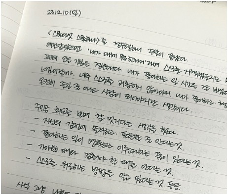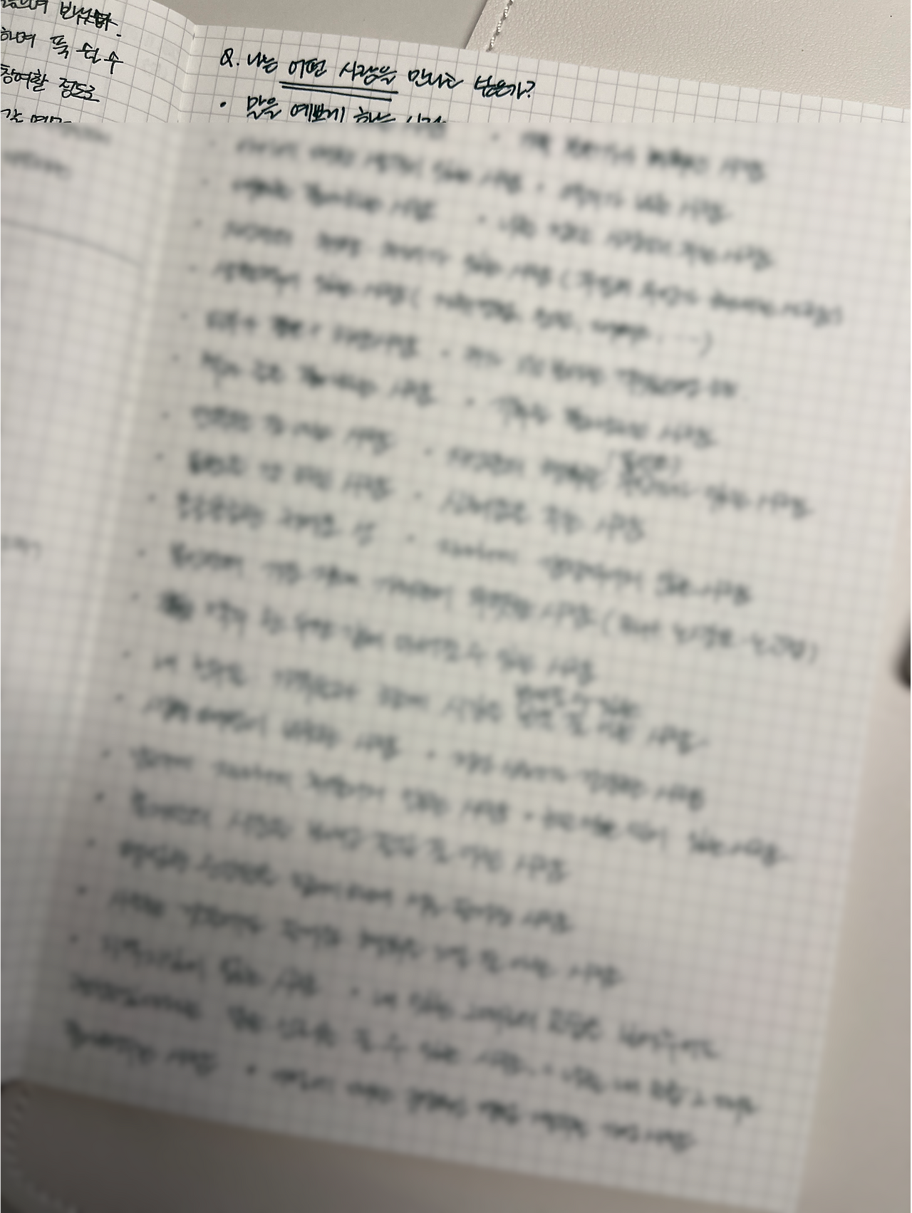 그 외에 일기장에 적어본 것들도 있는데 이번 글을 쓰며 다시 한번 읽어보니 너무 두서없이 썼다는 생각이 들었다. 그래서 조만간 오늘 글을 썼던 것처럼 내가 원하는 사람을 표현하는 한 문장 + 그 문장이 어떤 것을 의미하는지 구체적으로 풀어써보려 한다.