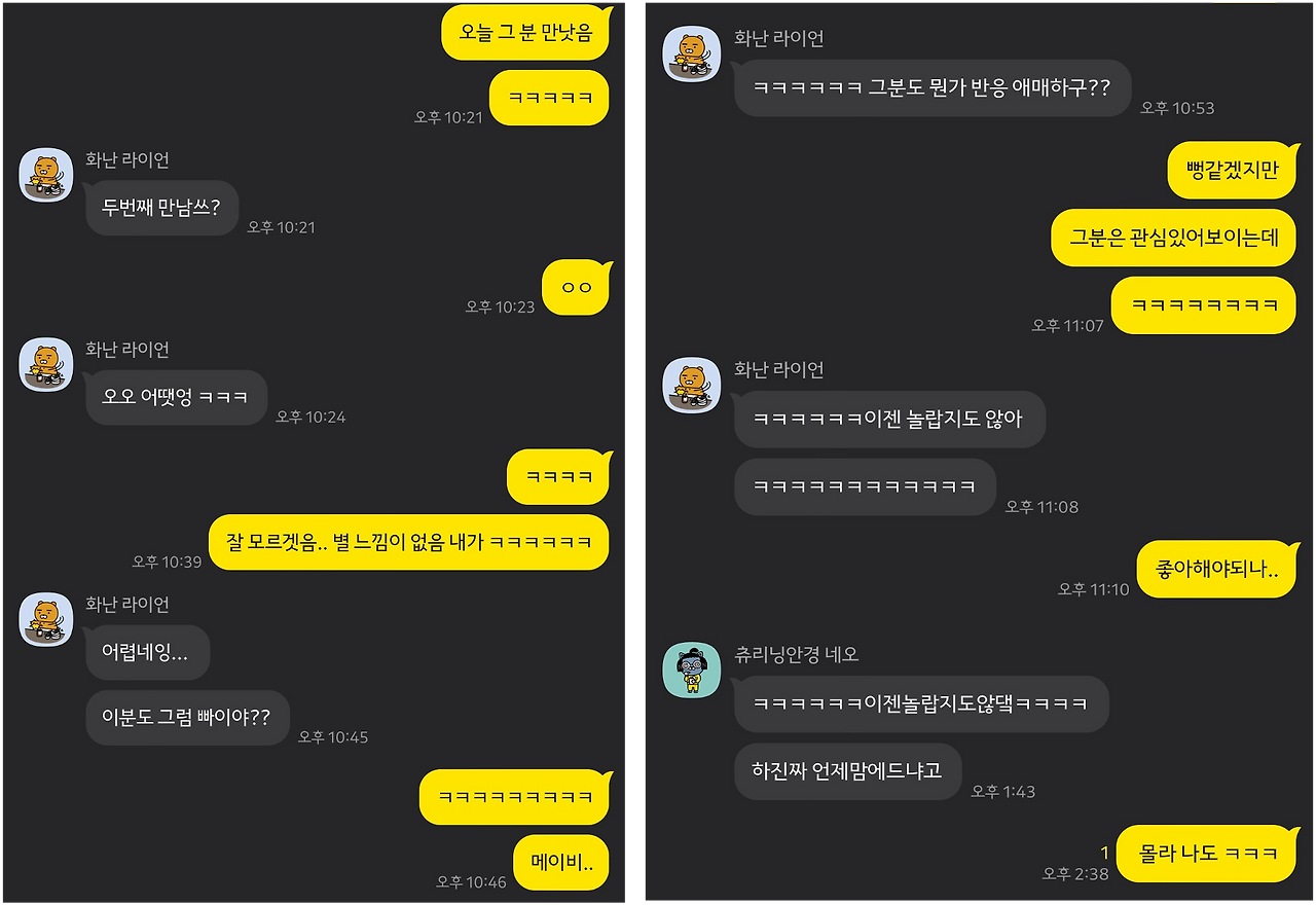 - 외모, 대화 다 좋은데 그냥 친구 같았던 사람 등등