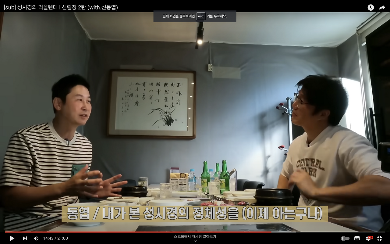 이와 비슷한 맥락에서 최근 성시경의 먹을 텐데라는 유튜브를 이야기해보고 싶다. 사실 가수 성시경의 노래는 좋아했지만 인간 성시경을 좋아하진 않았기에... 그의 유튜브 영상이 재밌다는 건 알고 있었음에도 굳이 찾아보지 않았다.