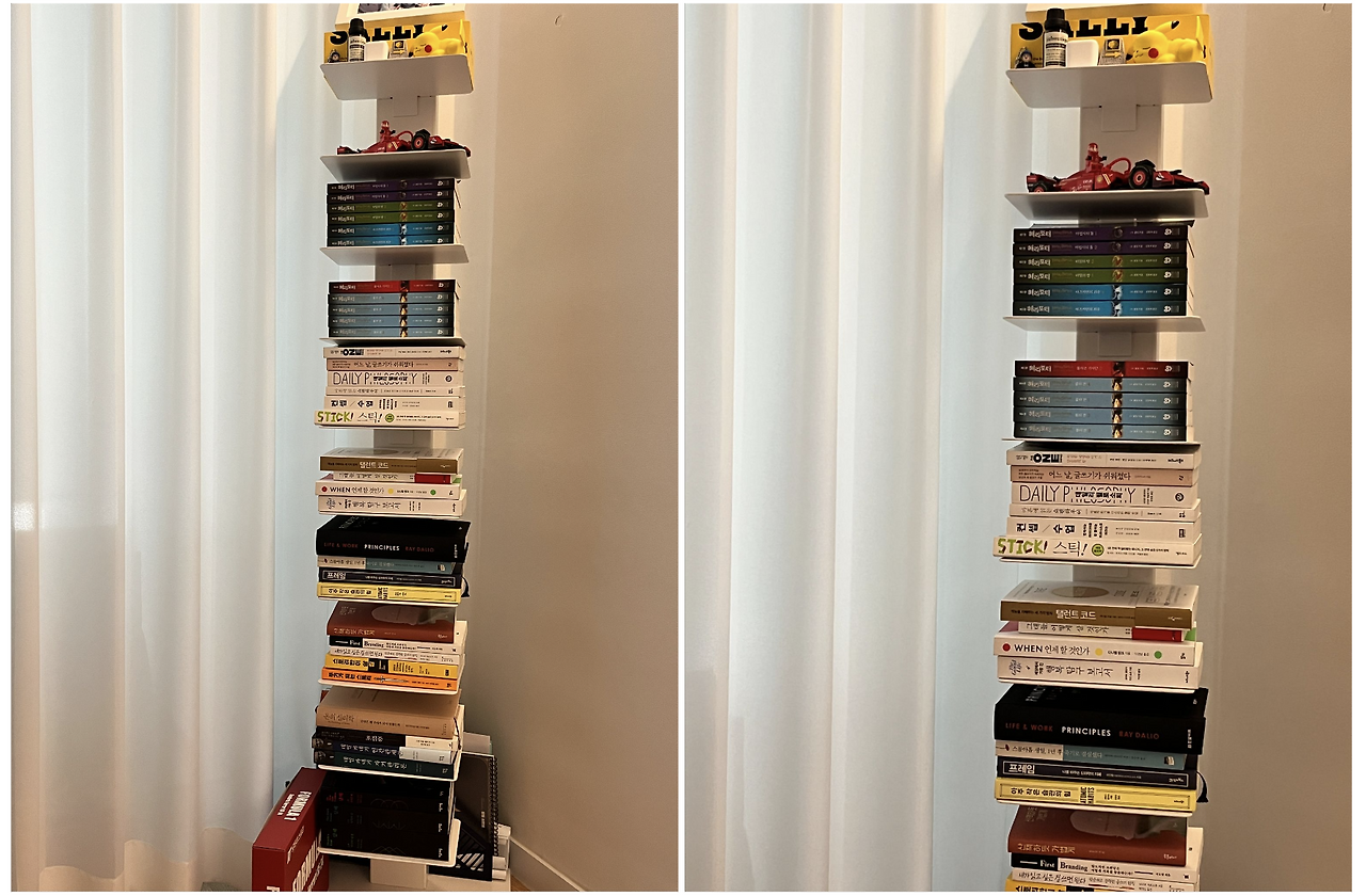 우리 집 거실 한구석에 산 지 2년 정도 된 스탠딩 책장이 하나 있다. 사실 인테리어 소품으로 구매했던 건데 어느 순간부터 친구들이 집에 놀러 오면 그 책장을 보고 꼭 한마디씩 하기 시작했다.
