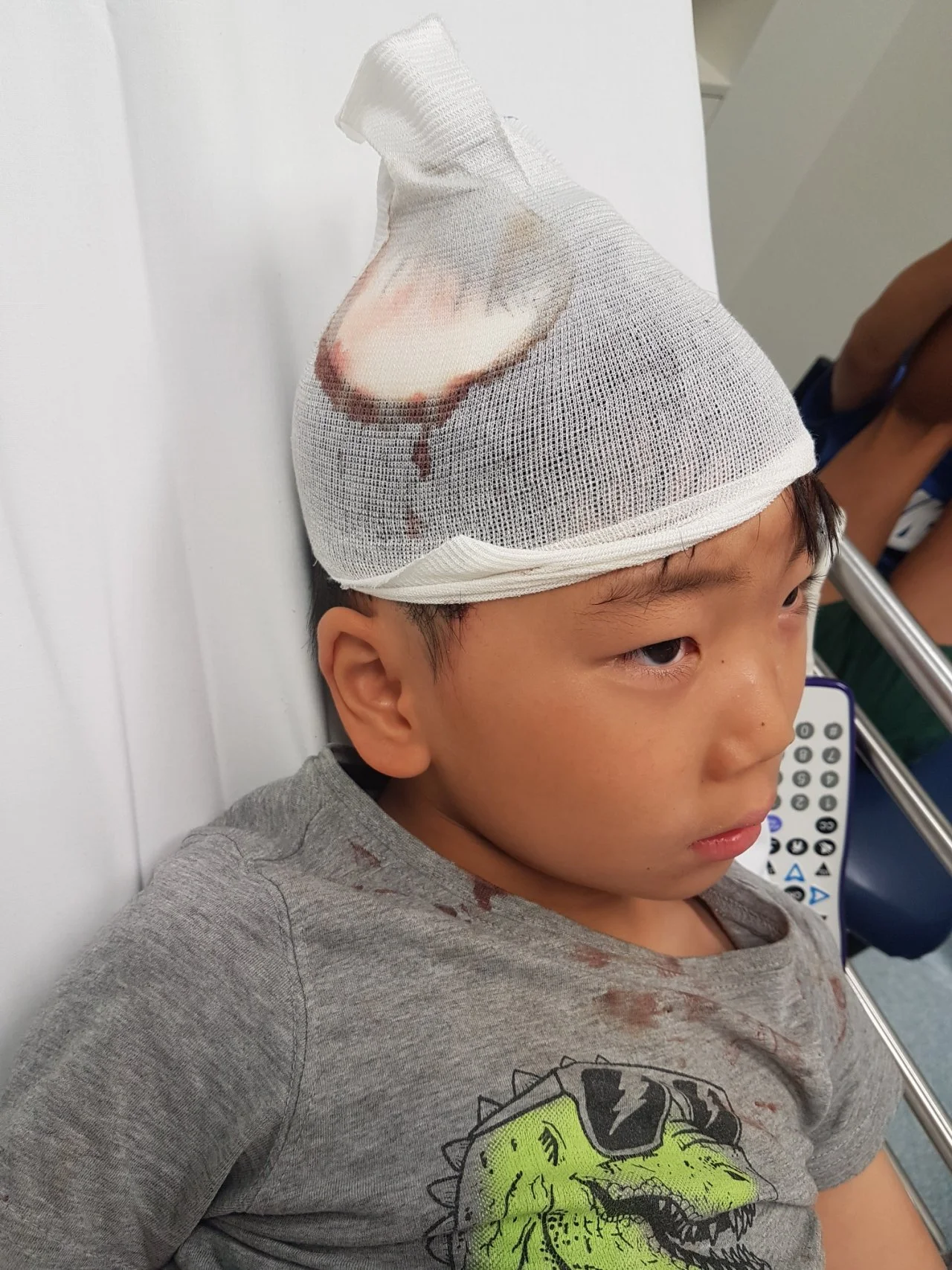 결국 아이는 머리를 몇 바늘 꿰매고 돌아왔다.