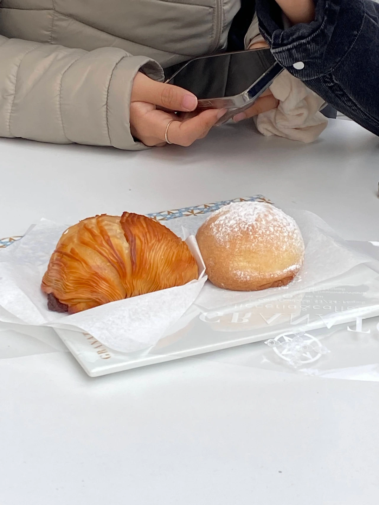 이탈리아에 왔으니까 아침은 카페에 가서 커피와 함께 빵을 먹었다. 카페 자리가 야외석 밖에 없어서 야외석에 앉았다. 유럽 사람들은 야외석에 앉는 것을 좋아하는데, 나 또한 실내보다는 야외에 앉는 것을 선호한다. 야외석에 앉으면 그날의 날씨를 그대로 느낄 수 있고, 지나다니는 사람들과 풍경을 구경할 수 있기 때문이다. 아침에 일어나서 야외석에 앉아 여유롭게 마시는 커피야말로 내가 바랬던 행복한 삶이었다! 이탈리아에서 바닐라라떼와 같은 커피를 주문하면 항상 뜨거운 커피로 나왔는데, 시럽이 따로 담겨져 나왔다. 그래서 커피에 시럽을 부어 취향에 따라 시럽 양을 조절할 수 있었다. 커피와 함께 주문한 빵은 크루아상이었는데 위에 하얀 가루가 뿌려져 있어서 마음에 들었다.