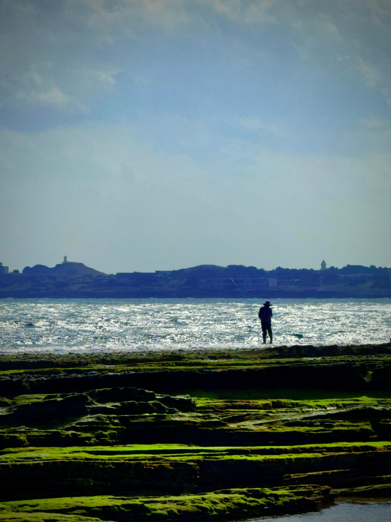 그래서 일단은 방금까지 오는 길 찬찬히 둘러봤던 것처럼 동일한 시간을 가져봤다. 당장 앞에 밟고 있는 바위는 어떻게 생겼는지부터 멀리 있는 곳까지 충분히 눈에 담아봤다. 물론 걷는 도중에 바위에 낀 이끼에 미끄러져 휘청일 때도 있었지만 결코 이 광경이 주는 감흥을 빼앗지 못했다. 이어서 서있을 수 있는 곳까지 가, 눈을 감고 규칙적으로 들려오는 파도 소리를 원 없이 들어보기도 했다. 그리고 충분히 가진 후에 다시 눈을 떠 옆을 바라봤는데, 묵묵히 자리를 지키는 한 명의 낚시꾼이 내게 영감을 선사해주고 있었다.