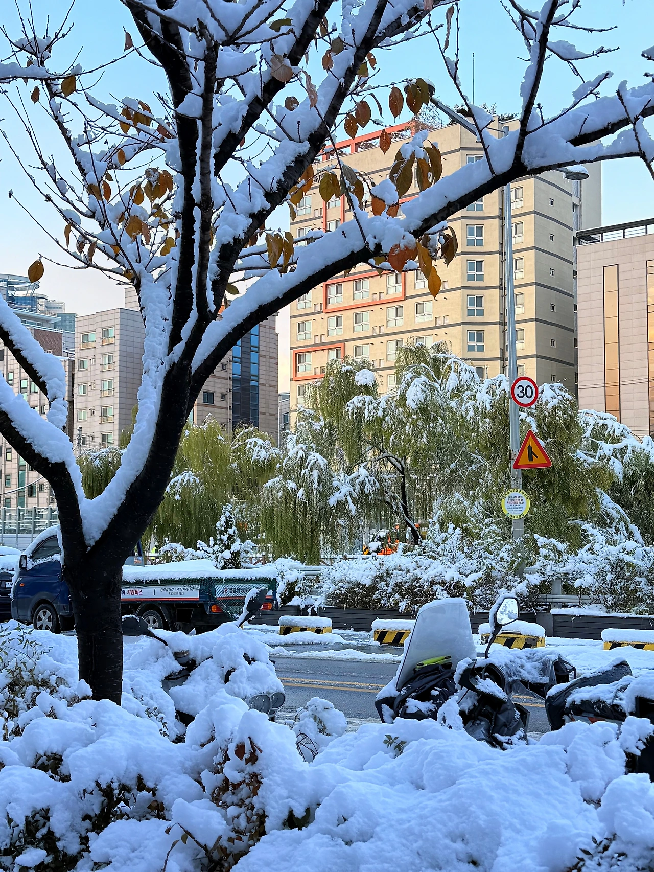 항상 지나다니는 길도 사진처럼 덮여있었다. 차가워서 만지는 건 그리 좋아하지 않지만, 포근한 인상으로 가득했다. 원래라면 잎사귀가 떨어진 앙상한 모습으로 가득한데 마치 빈자리를 채워준 듯했다. 나 또한 빈자리가 크면 사람으로서 외로움을 느끼는데, 이처럼 언젠가 그 자리에 채울 것들을 기대해 보았다. 그렇게 추운 겨울은 도리어 따뜻한 마음을 심어주었다.