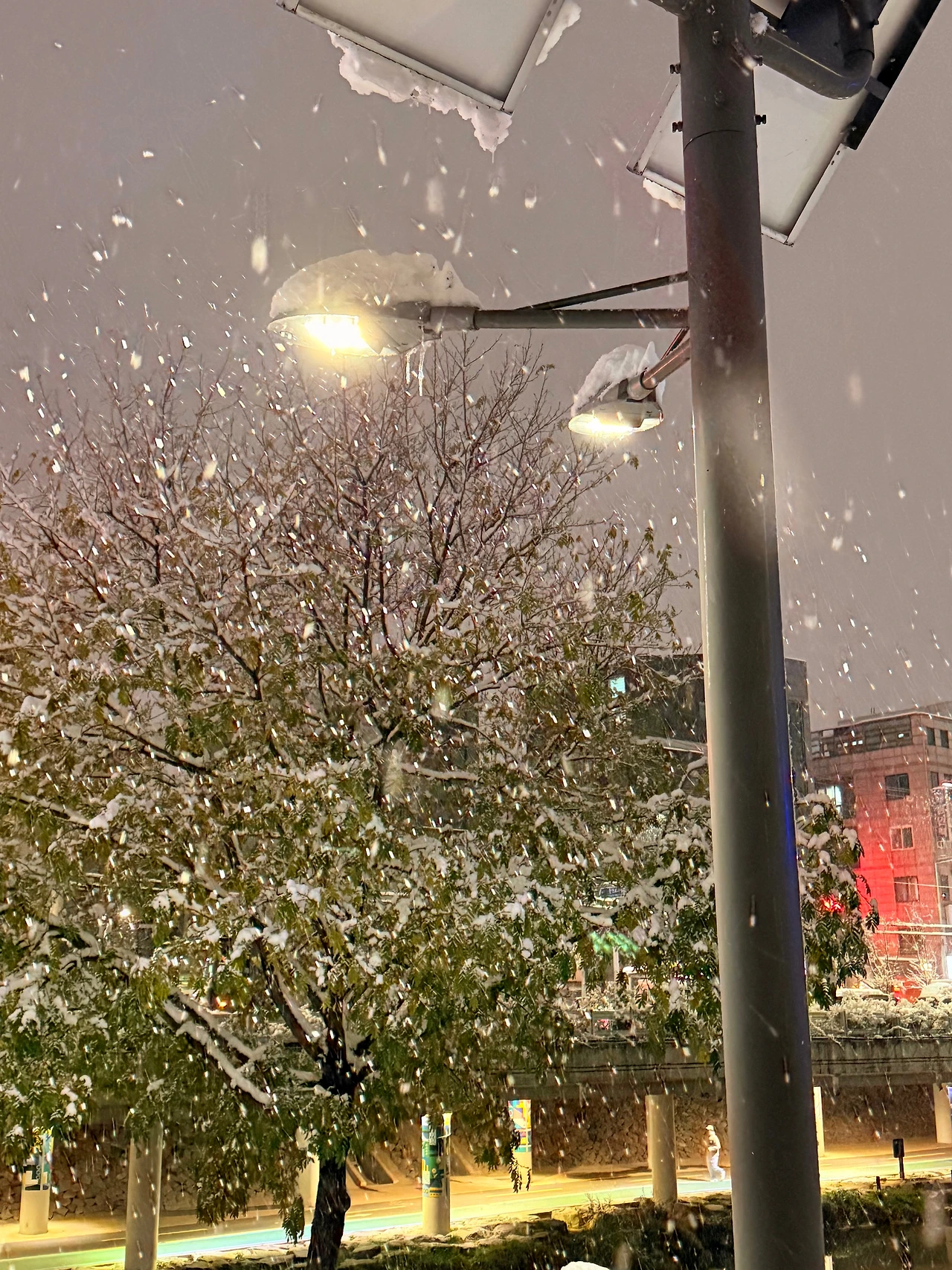 포장한 걸 챙기고 다리 건너기 전에 눈이 쌓여있는 가로등이 보여 사진을 찍었다. 무심코 지나간 자리였는데 말이다. 그리고 그 자리에 선 내게 한 가지 들려온 메시지랄까. "하루를 포근히 잘 마무리 지어보렴." 내게 있어 이 하루가 따뜻하다 여긴 건 특별한 순간이 찾아와서 그런 게 아니었다. 내가 머물고 있는 이 자리와 동네가 내려온 눈으로 소중하다는 걸 깨달았기 때문이다. 더불어 지금까지 이곳에 머물며 살아온 순간들에서 그 소중함은 '감사함'을 낳게 만들었다. 이사 오는 과정, 함께한 시간, 이뤄온 과업들이 떠올랐고, 그저 감사뿐이었다. 어쩌면 그 감사에 대한 나만의 보답이자, 따뜻한 자리를 채워가는 과정이 내게 있어 '글'인 듯하다. 그렇게 따뜻함과 감사함을 품고, 맛있는 음식을 먹으며 주어진 하루를 마무리 짓게 되었다.