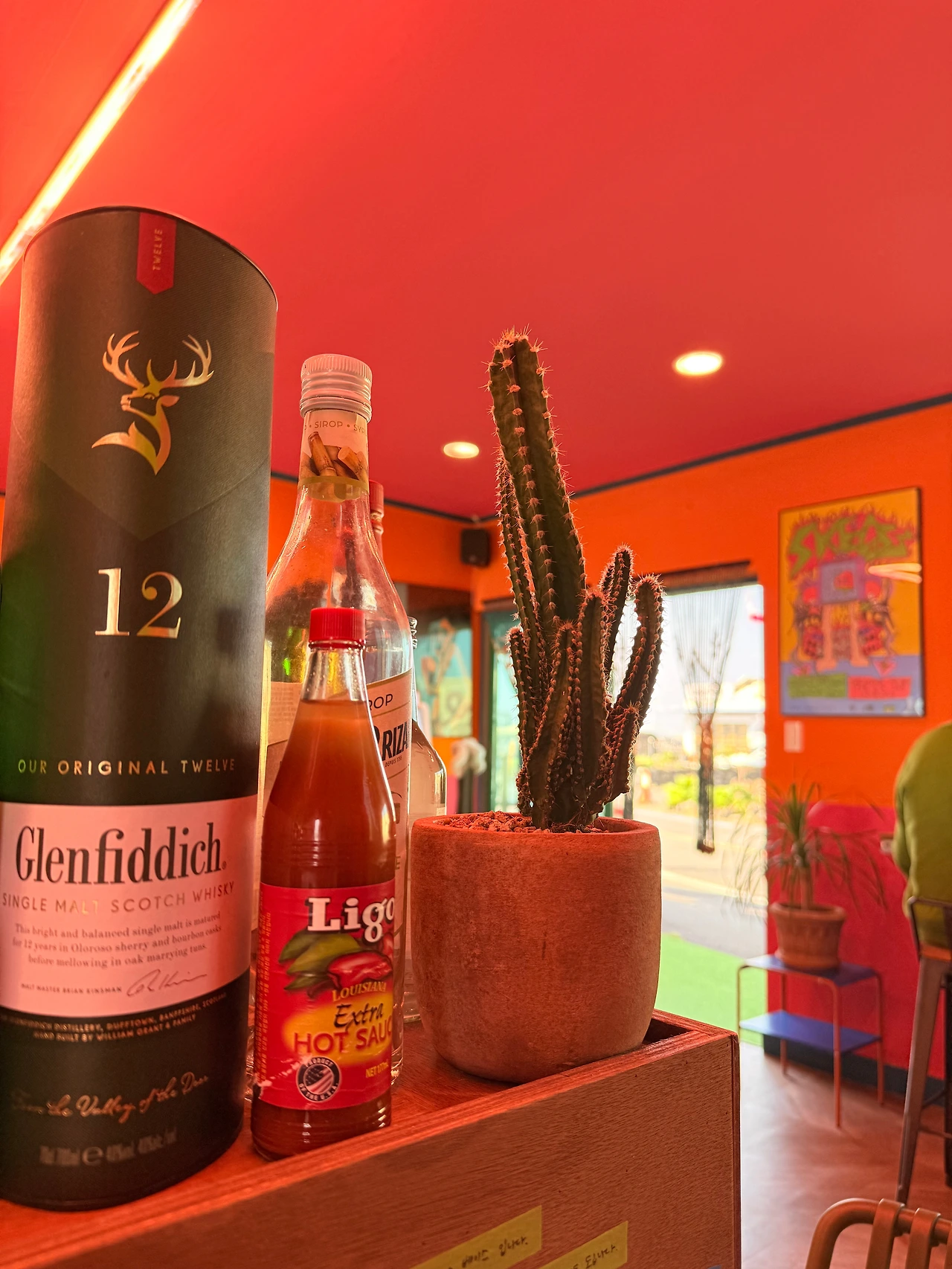 해당 목적지에 도착해 들어갔는데 다양한 주류 소품들이 정갈하게 놓여있는 인테리어와 여유로운 분위기가 풍겨져 좋은 인상을 가져다주었다. 물론 식당은 많은 손님들이 찾아와야 운영이 되겠지만, 평일이기도 하고 아늑함을 원하는 내 입장에서는 찰떡이었다. 자리를 잡고 주문한 메뉴를 기다리면서 사진도 남기고, 내 눈 반경에 보이는 것들을 하나하나 둘러봤다. 특별히 좋았던 건 식당인데도 카페나 펍처럼 가게 내부를 꾸몄다는 점과 찾아온 손님들이 온몸이 물에 젖어있어도 환영한다는 점이었다. 이 동네가 가져다주는 정겨움을 닮은 듯했다.