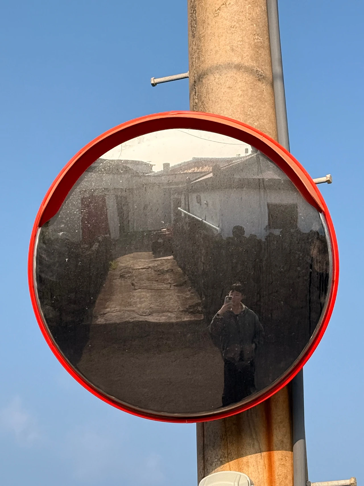 마저 자유롭게 연락과 독서를 이어가니 어느덧 이동할 때가 되었고, 가을 하늘이 드넓게 펼쳐져 있으니 카페 주변으로 한 바퀴 돌아보기로 했다. 그 안에 푸릇푸릇한 색채가 온 동네를 감싸고 있어 내 감각도 함께 살아나는 기분이었다. 특히 도시에서는 흔한 소음이 이곳에는 존재하지 않으니 한결 편안했다. 중간에 보이는 도로 반사경에 소소하게 인증도 남기며 주어진 시간을 충분히 누렸다. 그렇게 한참을 걸어가니 내 발걸음이 마음이 이끄는 대로 향하고 있음을 목격하게 됐다. 그리고 이는 곧 '감각을 깨우는 준비'의 다음 과정이었던 것이다. 동시에 그대로 따라갔더니 비로소 사색의 터전이 펼쳐지고 있었다. 지금 내가 자유로이 이곳을 받아들이며 돌아다니는 게 그 증거였고, 이전의 월정리 속 사색도 이 흐름을 거쳐 영감을 찾을 수 있었던 것이다.