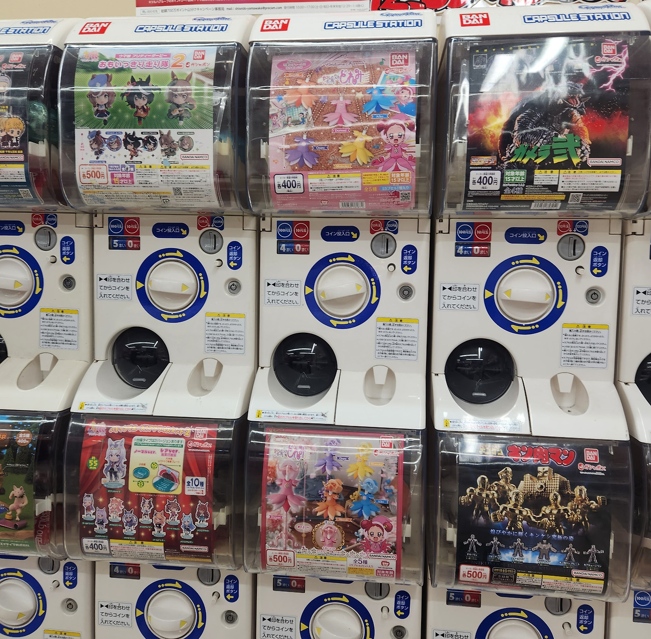 일본은 길가에 동전을 넣고 돌려서 뽑는 식의 캡슐토이가 정말 많이 있다. (옆 사진 참고) 어릴 때 문방구 앞에서 하던 건데 안에 들어있는 제품의 퀄리티는 많이 떨어지는 뽑기들이 많다. 하지만 일본은 캡슐토이에 정말 퀄리티 좋고 귀여운 굿즈들이 많았다. -무엇보다도 종류가 무척 많다.- 그렇게 3박 4일 여행동안 뽑기에만 6만 원을 쓰고 왔다. 되게 적은 가격이라고 생각하겠지만 한번 뽑을 때마다 한국돈으로 약 3000원 정도니 캡슐토이에만 20번 돌리고 왔다. 내가 원하지 않는 아이템이 뽑혀도 그냥 히죽히죽 행복했다. 랜덤으로 가챠 하는 도파민에 최고로 절여진 3일이었다.