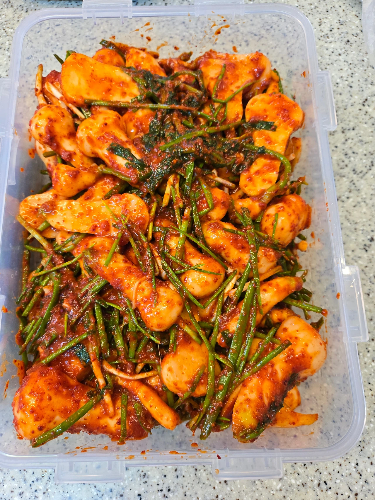 봄의 향기로 기운을 내 알타리김치와 파김치를 버무립니다.