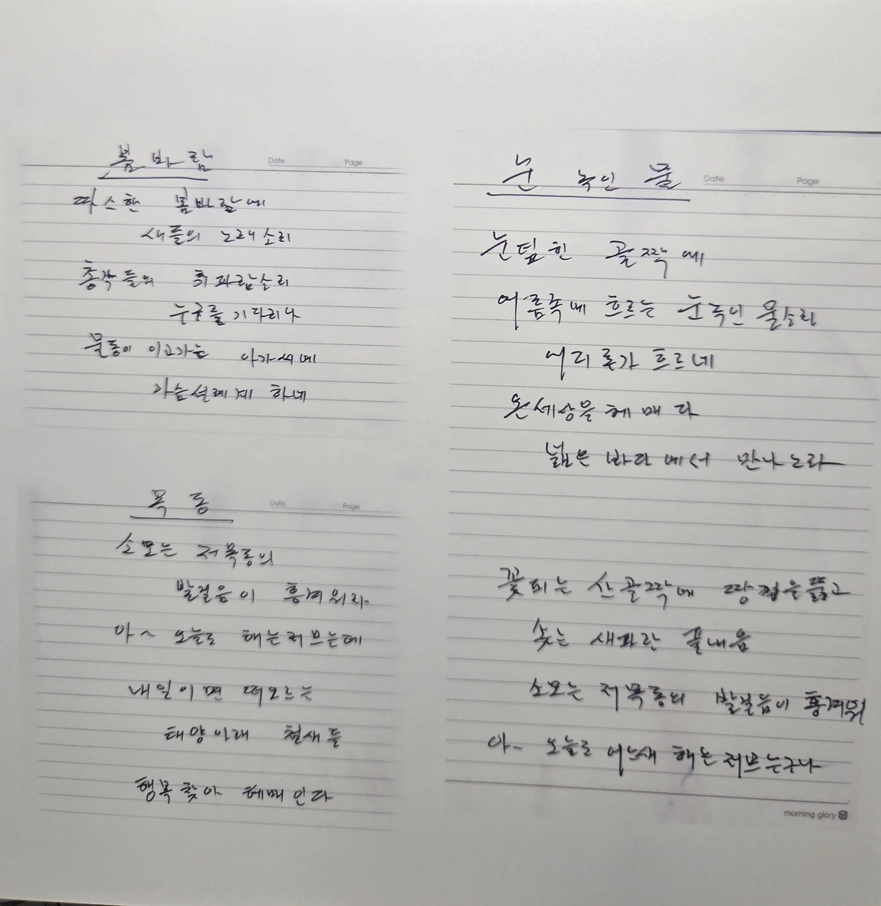 마음껏 하지 못한 공부에 대한 아쉬움에 그저 끄적끄적 적으셨었는지 아버지의 노트엔 속담, 외우고 계신 시, 라디오 들으며 적은 얘기, 자필 시 등이 두서없이 적혀 있었다.