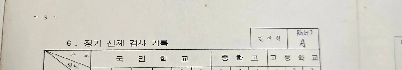 그곳을 열어보면 혈액형을 적어놓은 칸이 있는데 분명 제 건강기록부에는 (RH+) A라고 적혀 있었습니다.
