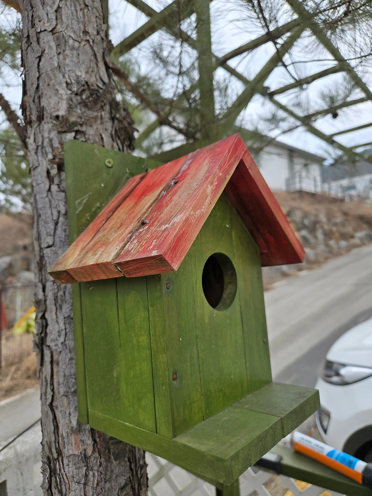 (소나무에 만들어 놓은 새 집에 2년째 새가 와서 부화를 하고 나가서 쫑쫑이 집이라고 명명했습니다.)