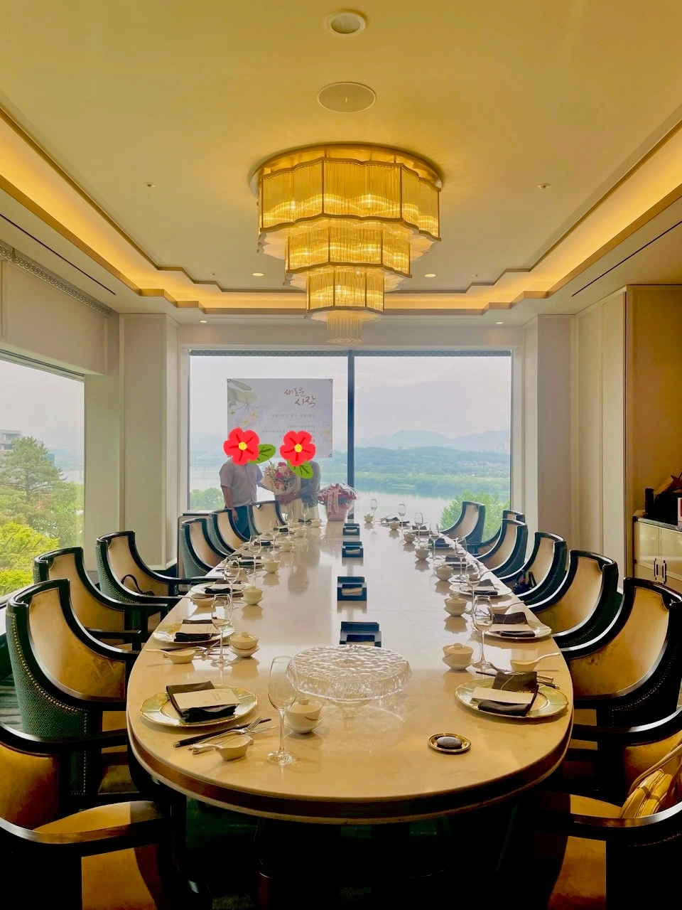 시간에 맞춰 도착한 가족들과 식당 룸으로 들어가니 한강이 환히 내려다 보이는 전망 좋은 방이었습니다.