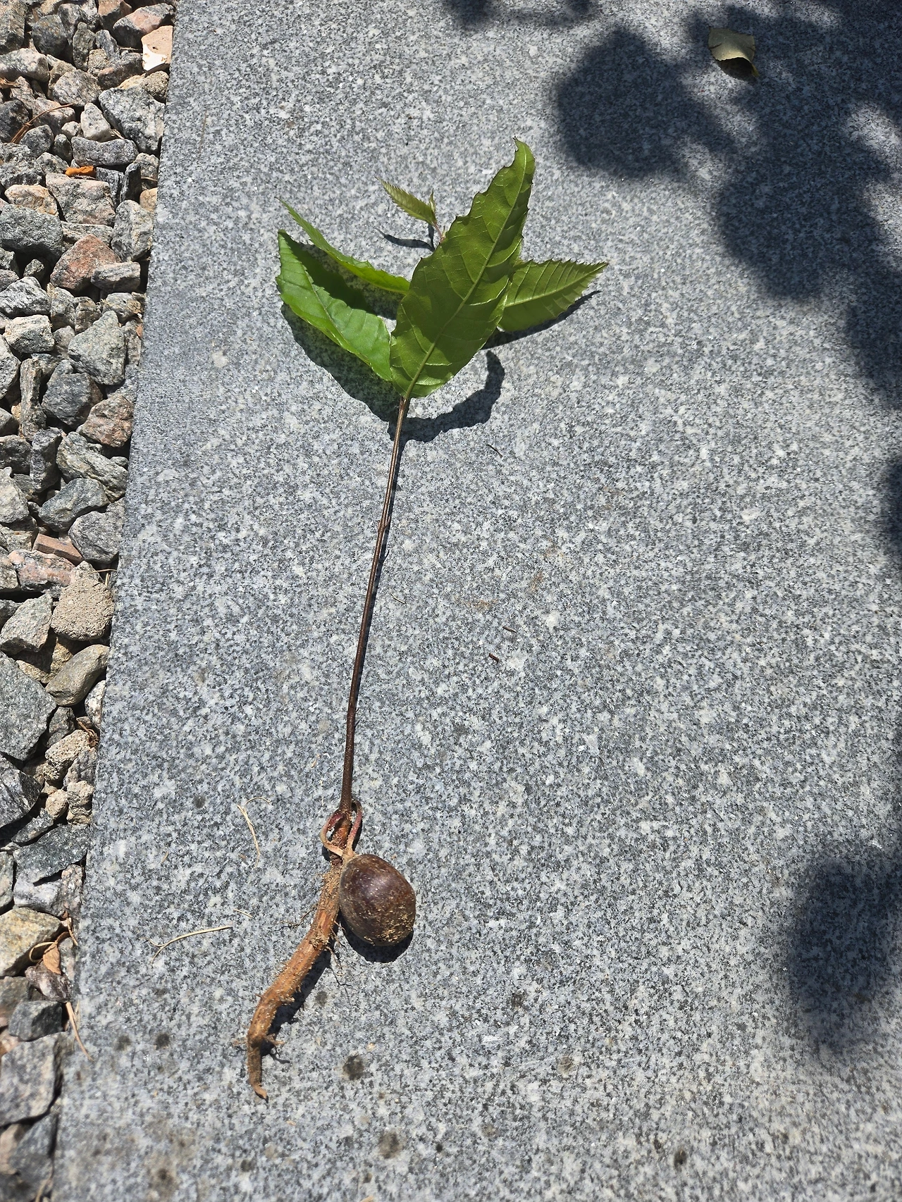 마당에 뿌려놓은 밤을 여기저기 숨겨놓은 다람쥐 덕분에 마당 이곳저곳에선 숨겨놓은 밤이 싹이 나고 잎이 자라나기도 합니다.