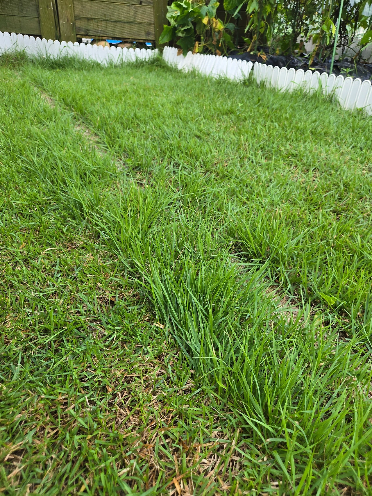 비 온 뒤 키가 쑥 자란 잔디를 깎으려 남편이 바삐 움직입니다.