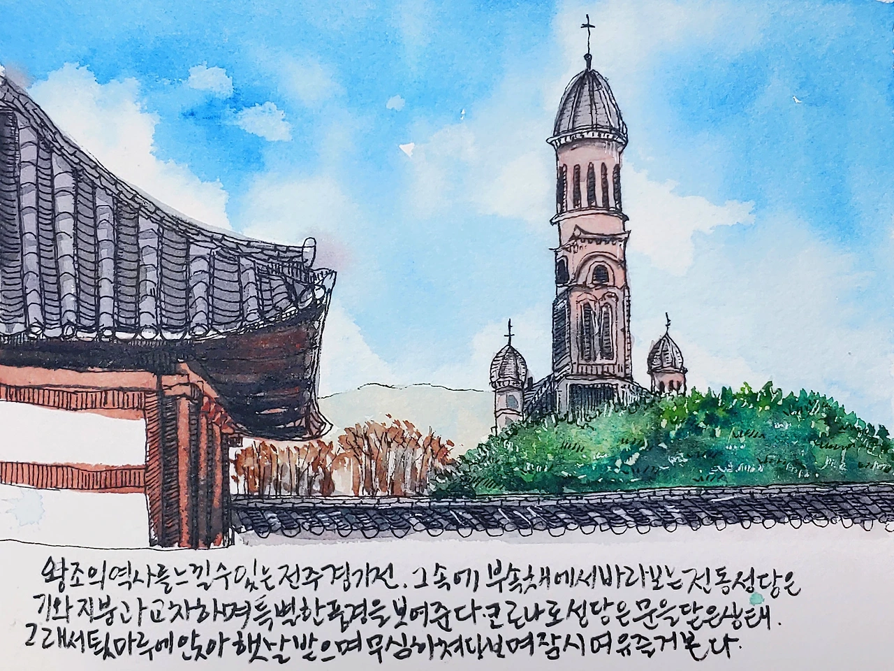 전주그리기 경기전에서 바라 본 전동성당