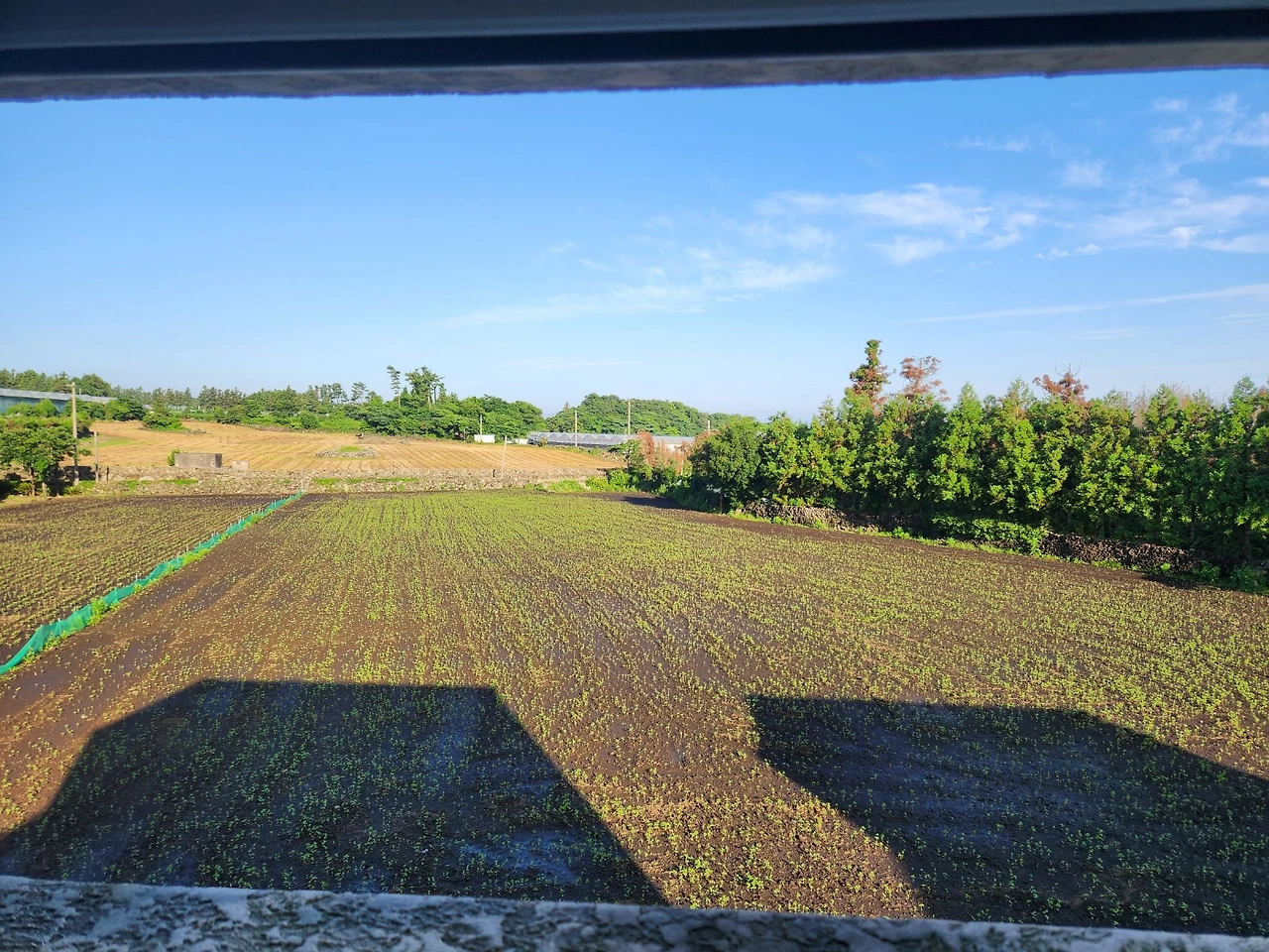 난 곧 일상 속 작은 것에서 감사함을 찾기 시작했다. 아침마다 아이들이 자고 있는 이층 방으로 올라가면 가로로 널찍한 창문이 있다. 창문 너머로 보이는 제주의 하늘과 밭의 풍경은 마치 벽에 걸린 액자 속 그림과도 같다. 육지에서도 하늘 보기를 좋아했는데, 그것은 제주의 하늘과 비교할 바가 못 된다. 자주 비가 내리는 것에 대한 보상이라도 하듯 맑게 갠 제주 하늘은 가슴 찡하게 아름답다. 파란 물감에 물 한두 방울 굵게 떨어트린 듯한 하늘에 한껏 부풀어진 하얀 구름을 눈에 담을 때면 행복이 차오른다.