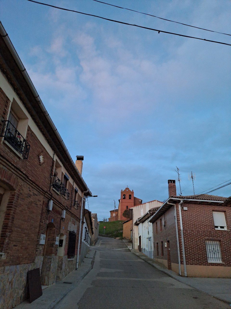 사실 우리의 오늘 목표는 레디고스(Ledigos) 다음 마을인데 그냥 주저앉기로 하고 알베르게를 찾아 하루를 쉽니다. 레디고스(Ledigos)에는 아주 세련되고 현대화된 알베르게와 동네 사랑방 같은 오래된 알베르게가 있는데, 우리는 ‘엘 빨로마(El Paloma)’라는 오래된 집을 선택합니다. 시설은 낙후되었으나 푸근한 정이 느껴지는 그런 시골집입니다. 식당을 겸하고 있어 저녁 식사를 주문해 먹는데, 역시 주인아주머니의 손 맛이 기가 막힙니다. 8시가 가까워 오자 마을 주민들이 삼삼오오 몰려들어 원주민과 순례자들이 식당 안팎에서 모두가 이 마을 사람 인양 잘 어우러지며 땅거미가 내립니다. 문밖을 나서니 언덕 끝에 붉은 벽돌의 예쁜 성당이 노을에 비껴 아름답습니다.