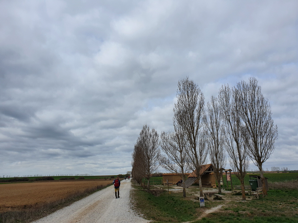 당연히 걸음에 속도가 나지 않습니다. 말하기를 좋아하는 남편도 지쳤는지 말을 아낍니다. 그저 묵묵하게 걷고 또 걷고 하다 보니 도로 옆에 쉼터가 나옵니다. 두꺼운 재킷을 벗을 요량으로 내려섰더니 한국의 젊은이 J가 먼저 와 있습니다. 그도 오늘은 배낭이 많이 무겁다는 하소연을 합니다. 까미노 중반에 오는 위기를 같이 겪고 있는 듯합니다. 그렇게 다리 쉼을 하고 있는데 전혀 예상치 못한 대만 젊은이 레베카가 지나가며 반갑게 인사를 합니다. 늘 붙어 다니던 한국의 H는 어디 갔는지, 독일 청년과 함께 길을 걷고 있네요. H는 발에 물집이 잡혀 온타나다에서 쉬고 있다며 며칠 뒤에 버스를 타고 레온으로 넘어온다고 합니다. 그러고 보니 까미노 순례길 초반에 만났던 많은 사람들이 보이지 않습니다. 시작할 때는 같은 마음으로 앞서거니 뒤서거니 하며 서로 안부를 묻고 격려해주고 했는데, 까미노 순례길 중반 400km의 여정을 넘어서고 있으니 이런저런 사정들이 생겼나 봅니다. 하기사 그 많은 날들 중 하루하루가 어디 만만한 날이 있었을까요?