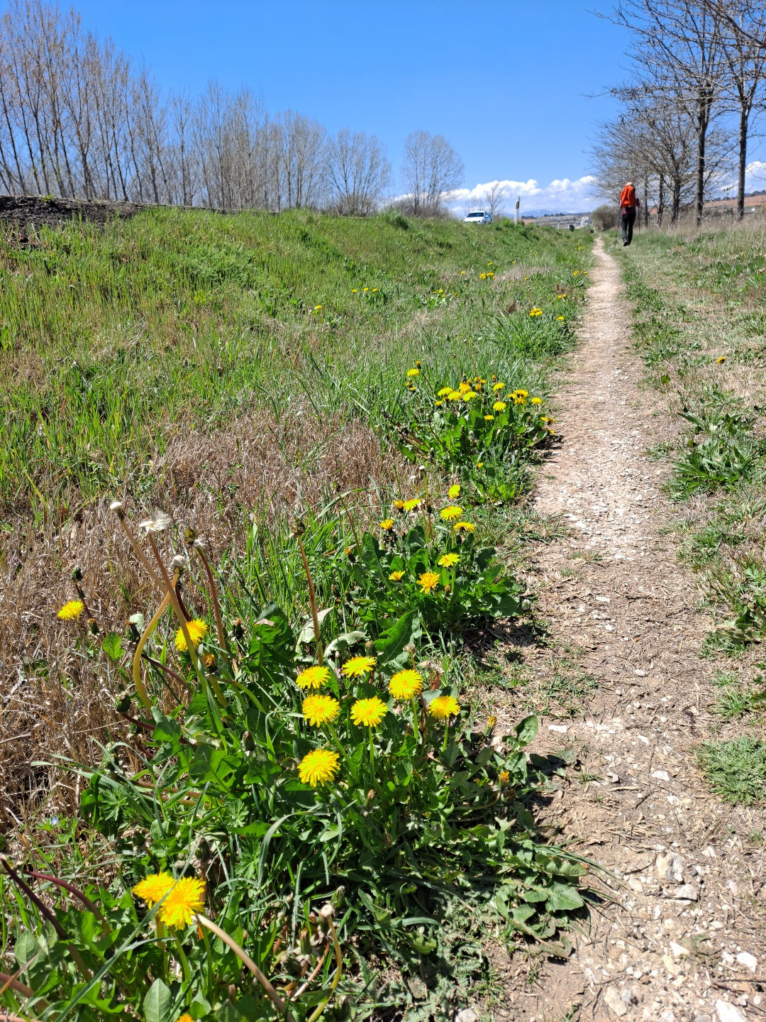 후반의 초기에 겪는 위기 같은 것인데, 많은 사람들이 끝까지 가지 못하는 이유를 알듯도 합니다. 도로 곁으로 난 길에는 민들레꽃이 노랗게 피어 힘겹게 걷는 저를 위로해 줍니다. 벌써 홀씨를 날릴 준비를 하는 꽃송이도 있습니다. 한 가지 아래에서 말입니다. 서로 다른 성장의 속도가 자연의 조화라는 가르침을 줍니다. 워낙 체력이 좋고 다리가 긴 렌초는 생장에서 우리와 같은 날 출발해서 레온(Leon)에서 이틀을 묵고도 우리와 만났습니다. 렌초의 속도와 나의 속도가 다르고 나이 드신 영국 형제분들의 속도가 다 다른 것입니다. 저는 우리가 머지않아 민들레 홀씨를 품게 될 것임을 짐작하고 있습니다.