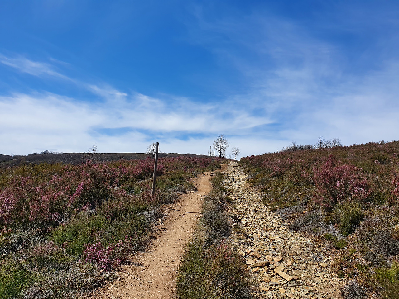 너덜 길이 계속되는가 싶더니, 곧 걷기 좋은 흙길이 펼쳐지며 점점 산의 정상에 가까워집니다. 오늘 가려고 하는 폰세바돈(Foncebadon)은 고도 1,430m로 제법 높은 산입니다. 우리나라의 악산들처럼 높은 정상을 바로 치고 올라가는 것이 아니라, 둘레길처럼 서서히 올라가는 길이라 천천히 걷다 보면 산의 정상에 도착하게 되는 것이 특징입니다.