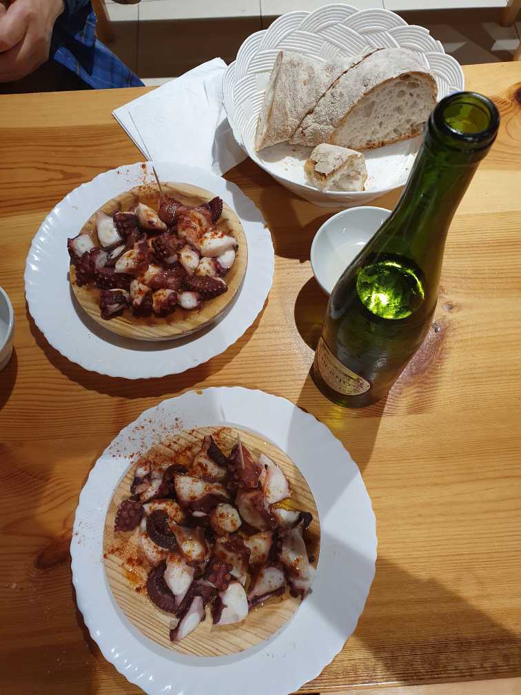 멜리데(Melide)는 매우 큰 도시입니다. 도시에 사는 사람들과 순례자들로 북적거립니다. 오늘 점심은 좀 거하게 먹습니다. 앞으로 걸어야 할 길이 지금 걸어온 만큼 남았지만 그 유명한 문어 요리와 화이트 와인으로 고생한 몸을 위로합니다. 그런데 좀 과음을 한 듯하네요.