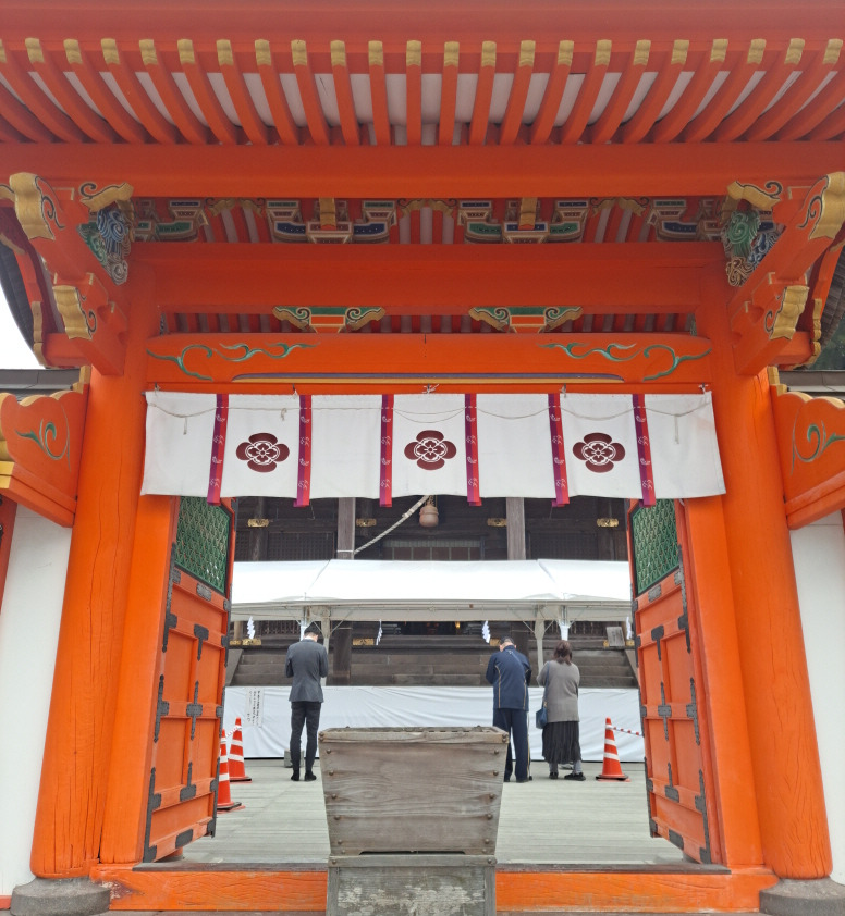 고라산에는 1600년도 더 된 신사가 있다. 파란색 표시의 리본과 신비스러운 산의 정기와 오래된 신사의 자력에 이끌려 걸은 지 얼마 되지 않아 고우라 대신사로 들어간다. 고우라 대신사는 액막이와 고령 장수로 유명한 신사로 사람들로 북적이고 있었다. 높은 산정 아래에 위치하여 아래의 치쿠고(筑後) 평야가 한눈에 보이는 전망도 좋은 곳이다. 신년맞이로 들뜬 사람들 틈에 끼여 우리 부부도 촛불을 밝히며 신년운을 빌어본다.